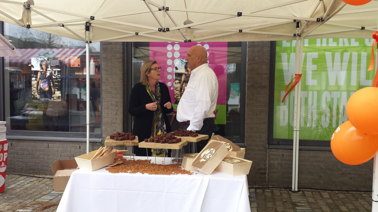 On Wednesday morning, TV chef Herman den Blijker and TV presenter Caroline Tensen handed out delicious brownies in front of the campus supermarket for free.