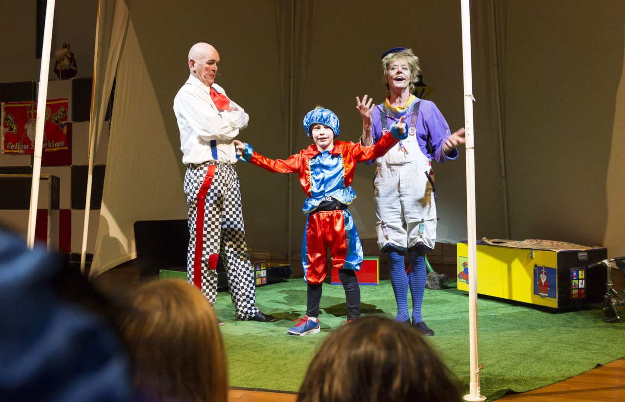 At the Auditorium, acrobats Dunne Deur and Knuppo showed off some skills, while the children watched from the steps to the stage and often joined in. Jumping and laughing kids helped Knuppo pull a prank on Dunne Deur. And the acrobats’ performance wasn’t the only thing that impressed the children; they were quite impressed with the Auditorium itself. Some of the more imaginative children had visions of the aisle towards the stage being a slide, while the rows of seats appeared like a labyrinth to those who were too short to be able to peek over the backs of the seats.