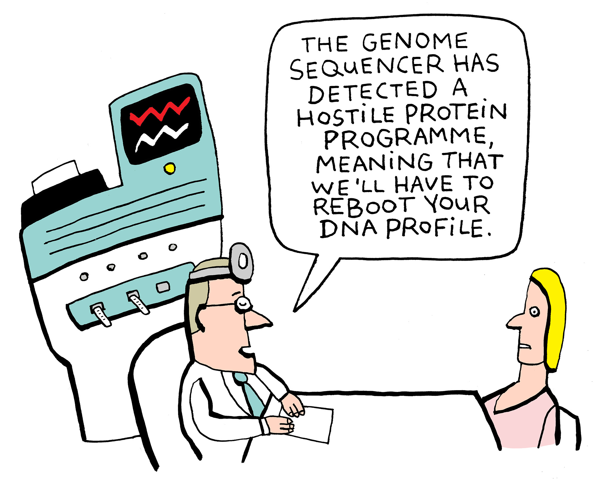 His optimism is partly due to the impressive amount of equipment the biomedics have been gathering on the sixth floor of the Medicine building over the last ten years. Mapping the entire human genome, which was considered next to impossible during the days of the Human Genome Project in the 1990s (and cost hundreds of millions of euros at the time), now only takes a few weeks and costs a mere €5,000. Mapping essential genes, which cause certain medical disorders or character traits, can be done far more quickly and far more cheaply; throw a random cell into a machine and you’ll have a few terabytes’ worth of base pairs in a matter of days.