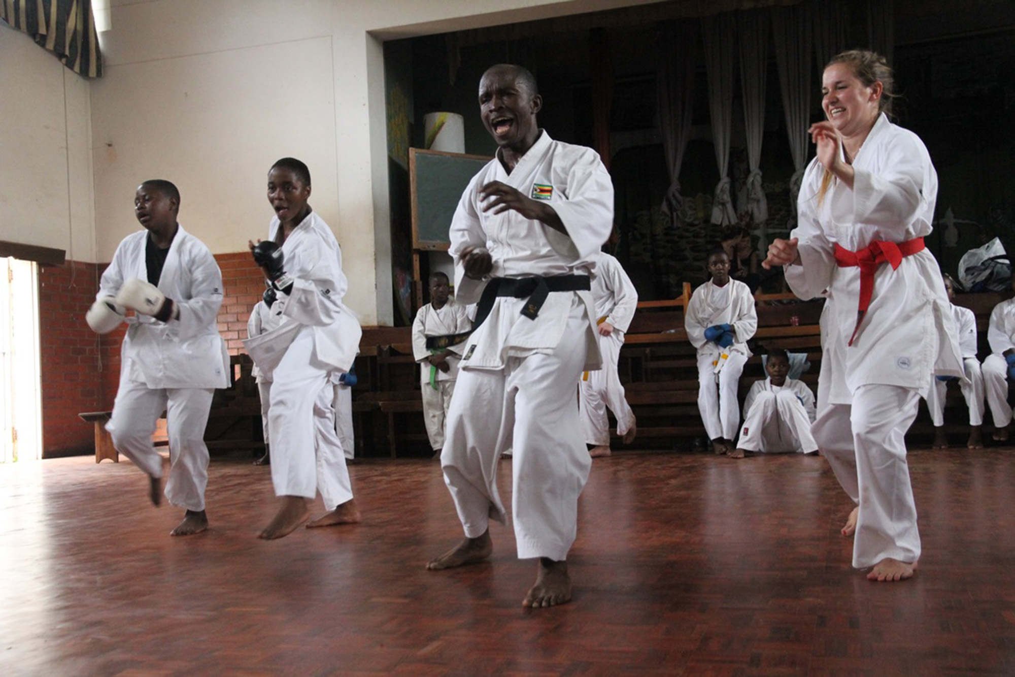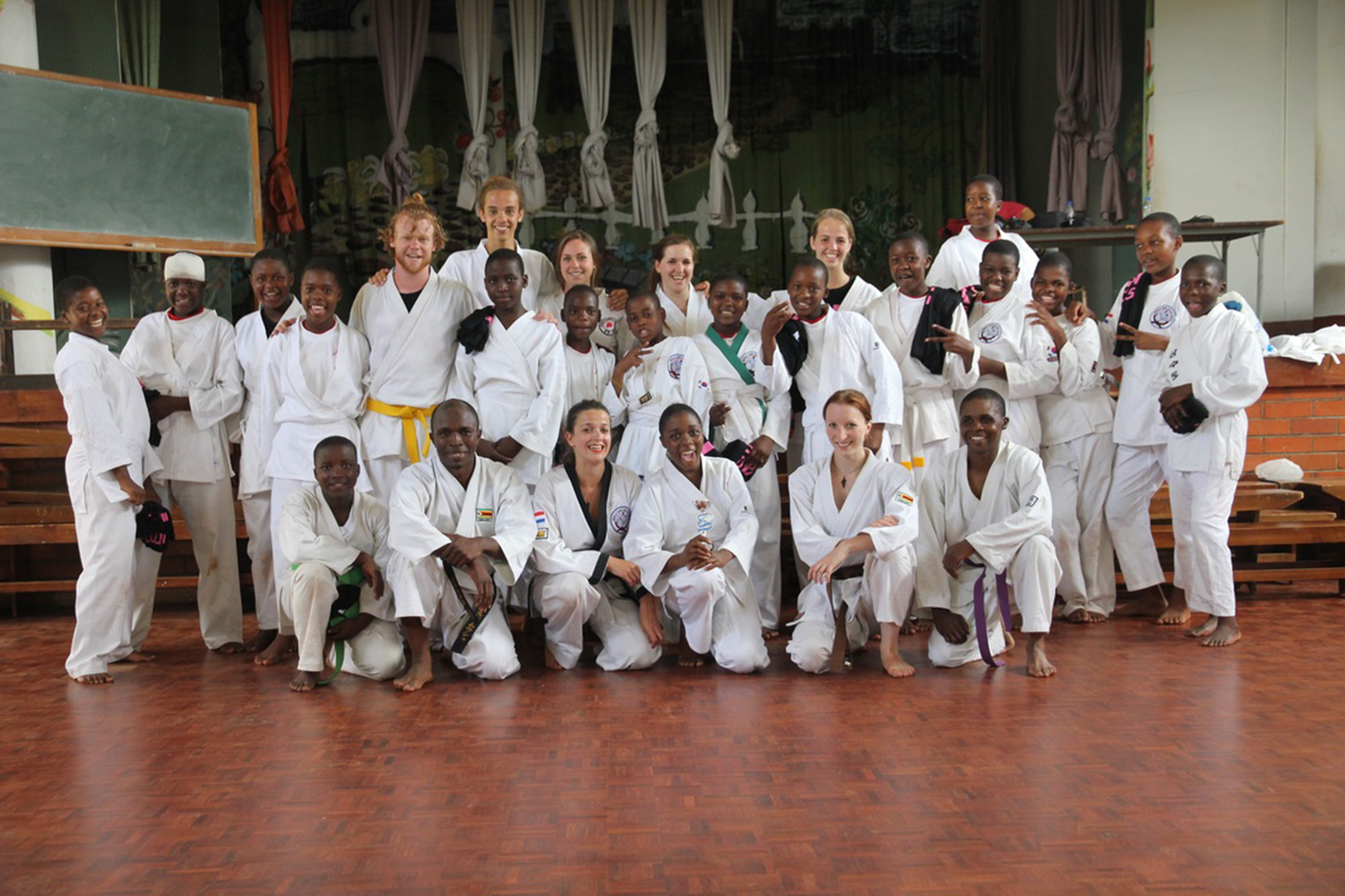 Then it all came together – the concept, the location and the plan. Empowering girls by teaching them Martial Arts in Zimbabwe. Now it was about finding the means to realize the project. Ginie and Alex asked EUC for help. “When we set up the project, Elisabeth Noordegraaf –Ellens (Head of the Humanities and Economics & Business Departments at EUC – EM) was the one to review our very first proposal for the project. She rejected it twice. I think it was very helpful for us, because it meant that we had to go back and think through all the practicalities again – call all the embassies, do the risk assessments – basically run it professionally. They did not let us get away with sloppy work. That was useful. They assisted us financially by letting me and Alex go to Zimbabwe instead of pressing on our employee contracts. EUC has always been supportive of employee initiatives.” Thus, the first run was part of the EUC study trip in January 2015.