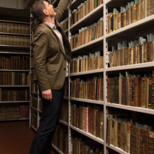 The library holds about thirty thousand old prints, five thousand of which are of or about Desiderius Erasmus. Van der Laan has copies of more than two hundred of all three hundred editions of The Praise of Follies. He opens the vault door, the light flashes on. Books are everywhere: from the ground up to the ceiling, around the corner, row after row. In metal shelving units, in leather bindings, on parchment and on paper. The vault has a temperature of eighteen degrees Celsius; the humidity is set at fifty percent. The air filter is cleaned twice a year.