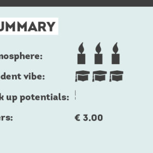A friendly bouncer stands in front of the pub. He smiles and actually opens the door for us. Inside we find a variety of high and low tables, a large bar and a little living-room-like nook, replete with rugs and sofas. We like the fruit machines sitting close to the nook. Unfortunately, no one seems willing to gamble away all their hard-earned cash on this particular Friday evening.