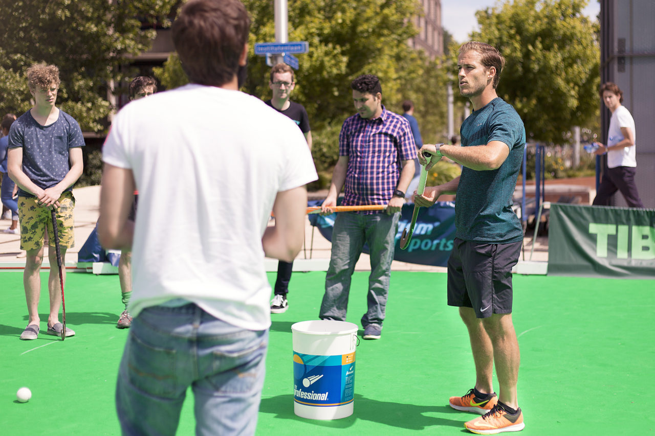 The hockey clinic mainly attracted children, who were being taught how to dribble and take shots by Jeroen Hertzberger. The Rotterdammer, who was an Erasmus University student for one year, has been preselected for the men’s hockey team representing the Netherlands at the Olympics. “Teaching a clinic on a square really is completely different from teaching a clinic at a hockey club”, Hertzberger said. “It’s interesting to teach people who have hardly played any hockey before some tricks.”
