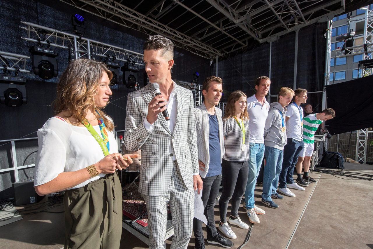 Four proud Olympians were in the spotlight at Erasmus Plaza on Monday because of their performances at the Olympic Games in Rio de Janeiro. Maaike Head won gold in the lightweight double sculls and Marloes Keetels reached the women’s field hockey final with her team. Mitchel Steenman and Joost van de Burg did not win a medal.