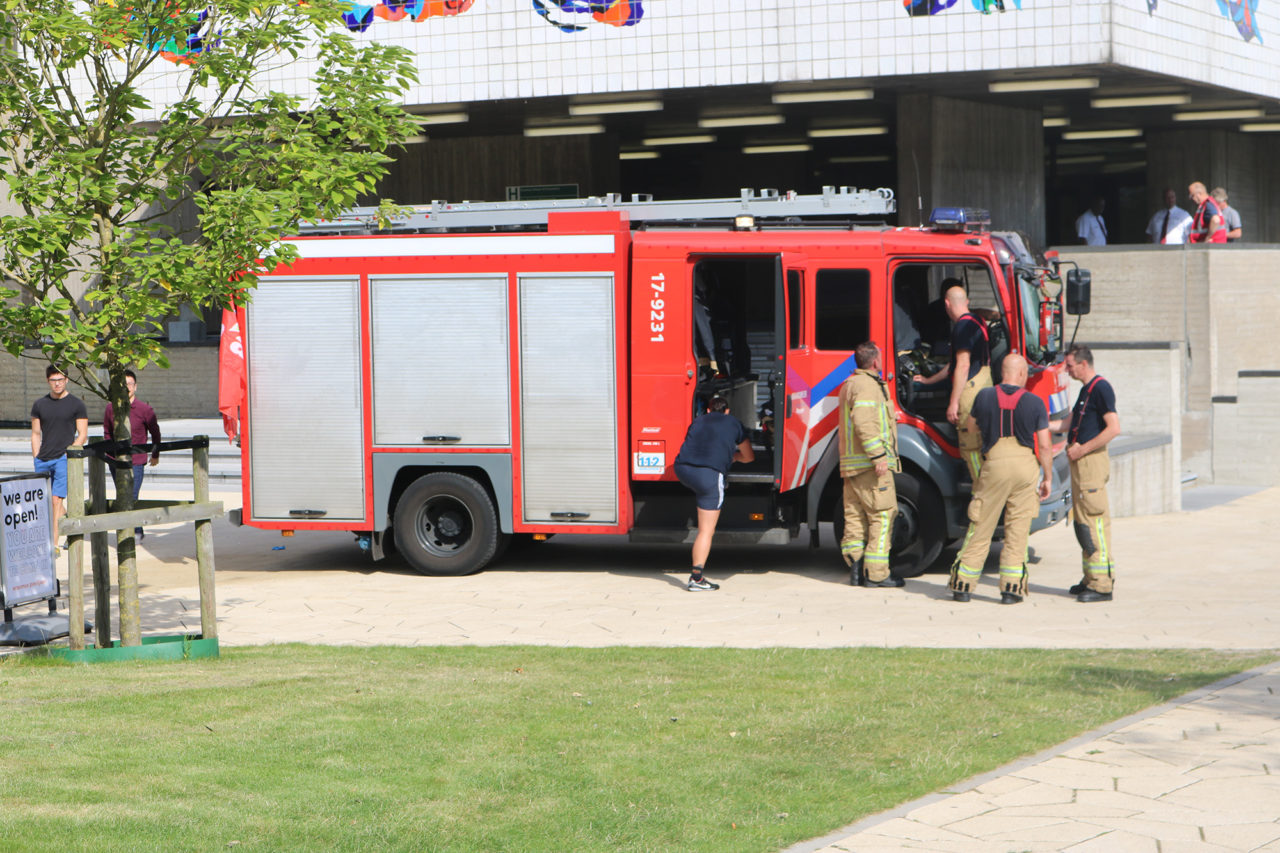 A small fire flared up near the entrance of the Tinbergen Building adjacent to the Erasmus Pavilion on Thursday morning around 11:30. Two fire engines and a police car responded to the call and were able to contain the fire.