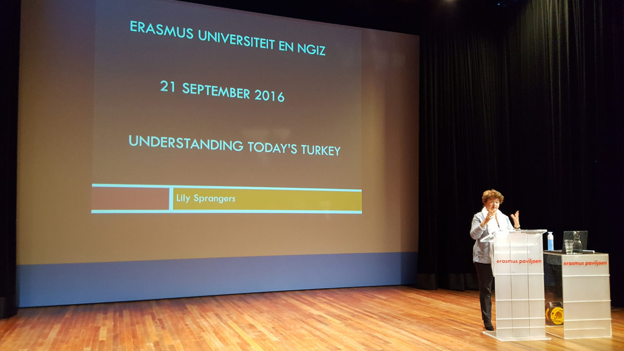 With all the Turkish feuds that have been fought recently in Rotterdam, there was reason to assume that the ‘Understanding Today’s Turkey’ lecture in the Erasmus Paviljoen would focus mainly on tensions between supporters of President Erdogan and his arch-rival Gülen. Nothing appeared further from the truth: Lily Sprangers, Director of the Turkey Institute, spoke mainly about the tense relationship between Turkey and Europe on Wednesday evening, 21 September.