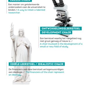 The ‘idealistic’ category includes professors where the financiers of the chair represent an ideology. This includes the Thomas More foundation. This is a foundation with a catholic basis which, through the appointment of endowed professors at a university, wishes to ‘convey the catholic tradition by means of courses, lectures and speeches which are freely accessible for students of all faculties’, according to its own website.