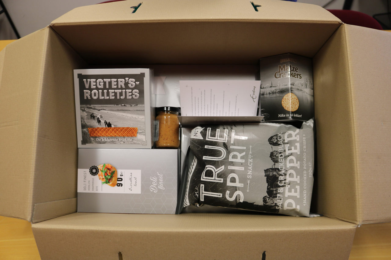 As EM we’re a bit biased, but of course, the best Christmas parcel is the EUR one: “This year’s Christmas parcel is in a sturdy box with a handy handle that will actually start to hurt a little if you have to trek half way across Rotterdam with it. Just like last year, but then you only discovered when you got home that you’d been dragging a wheeled suitcase around in the box. That’s not the case this year: the content is classic, grey (literally) and robust. But we’ve no complaints, because we do like a traditional Christmas. The cashew nuts, chocolate and melba toast are there, as is a bottle of wine and the obligatory non-food product: a Turkish towel. An important plus point: no pork this year. And another plus: local products including Maasstroompjes biscuits and Rotterdam Zeemansboter peanut butter. And the Tony Chocolonely’s already gone.”
