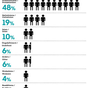 Nearly half of the religious staff are Protestant, 19 percent are Catholic and 10 percent Muslim. More than one in ten staff members who consider themselves religious would not attribute their beliefs to one of the major world religions. They call themselves ‘somethingist’ or spiritual or are unwilling to give a name to their religious beliefs. “There’s a higher power, but I don’t know exactly what that is,” writes one of the respondents: “Not one religion in particular; more the mystical schools from various religions.” A third: “I believe that there’s more between heaven and earth.”
