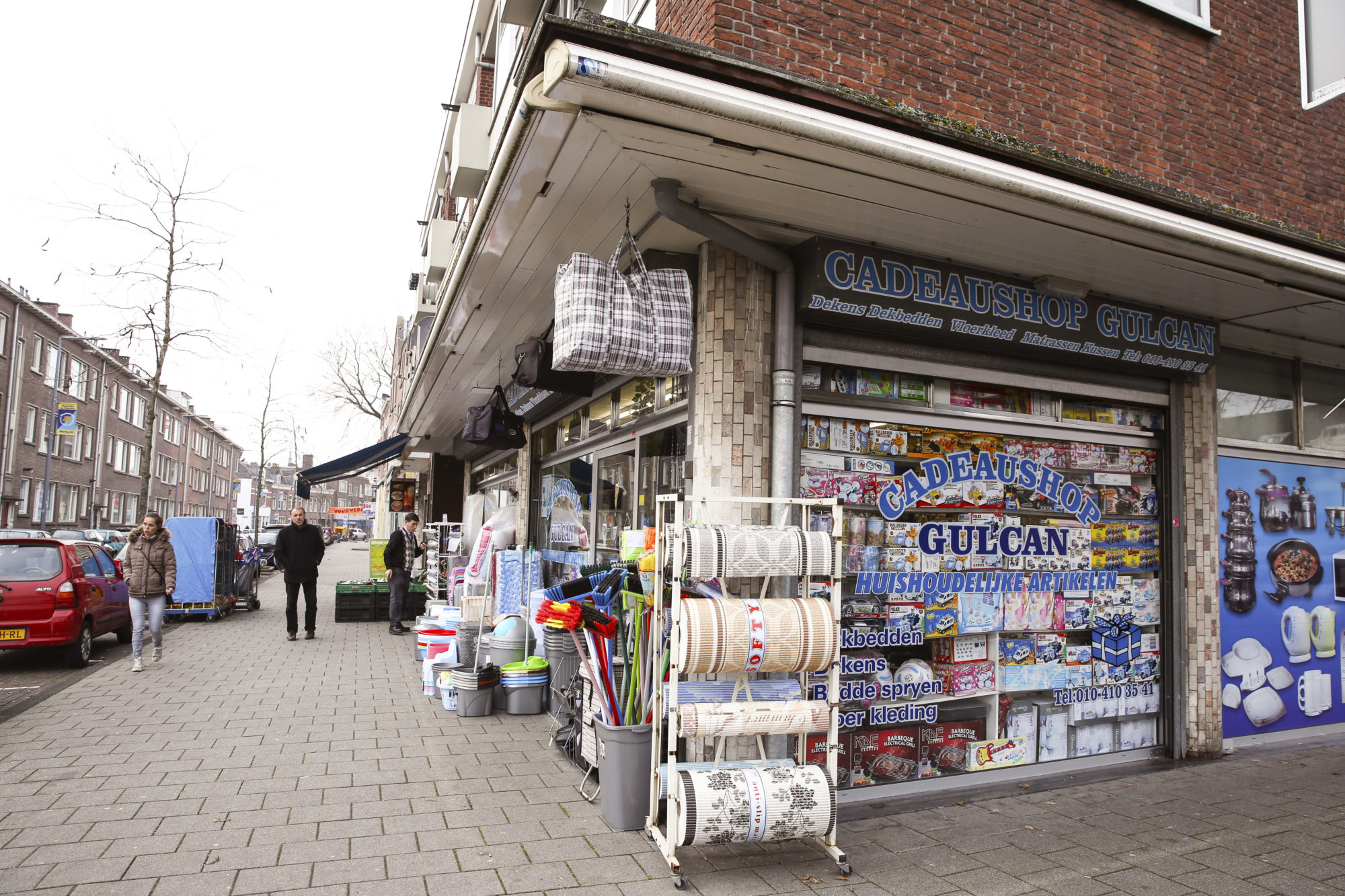 He really likes the mix of cultures. He shows us his shopping street, which does not have a branch of Albert Heijn, but does have internationally oriented shops – a Polish supermarket and the Gulcan gift shop, whose window has a sign advertising “bedde spryen” rather than “beddenspreien”. Samir likes to do his groceries here. “Things are considerably cheaper and fresher than at the big-name supermarkets.”