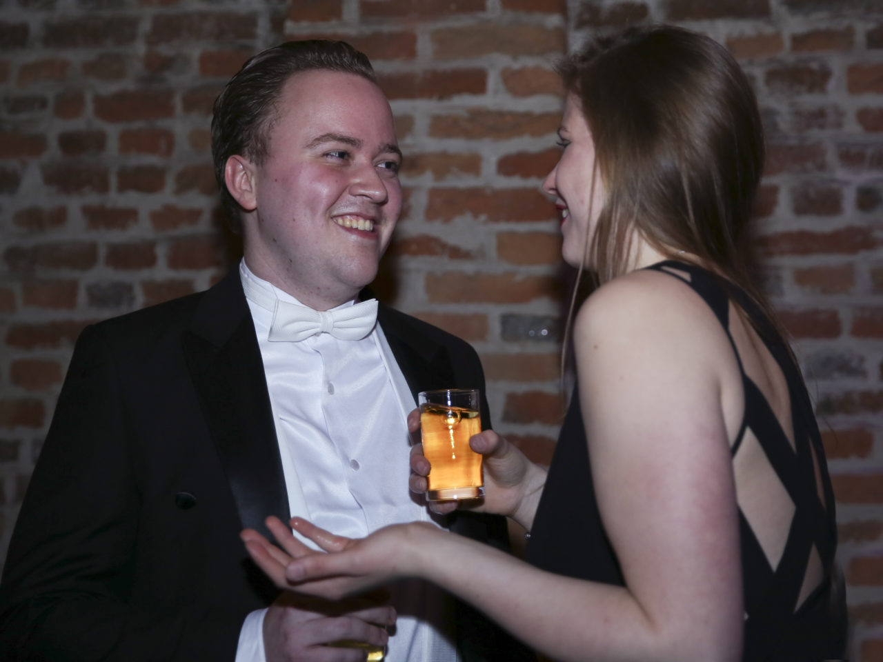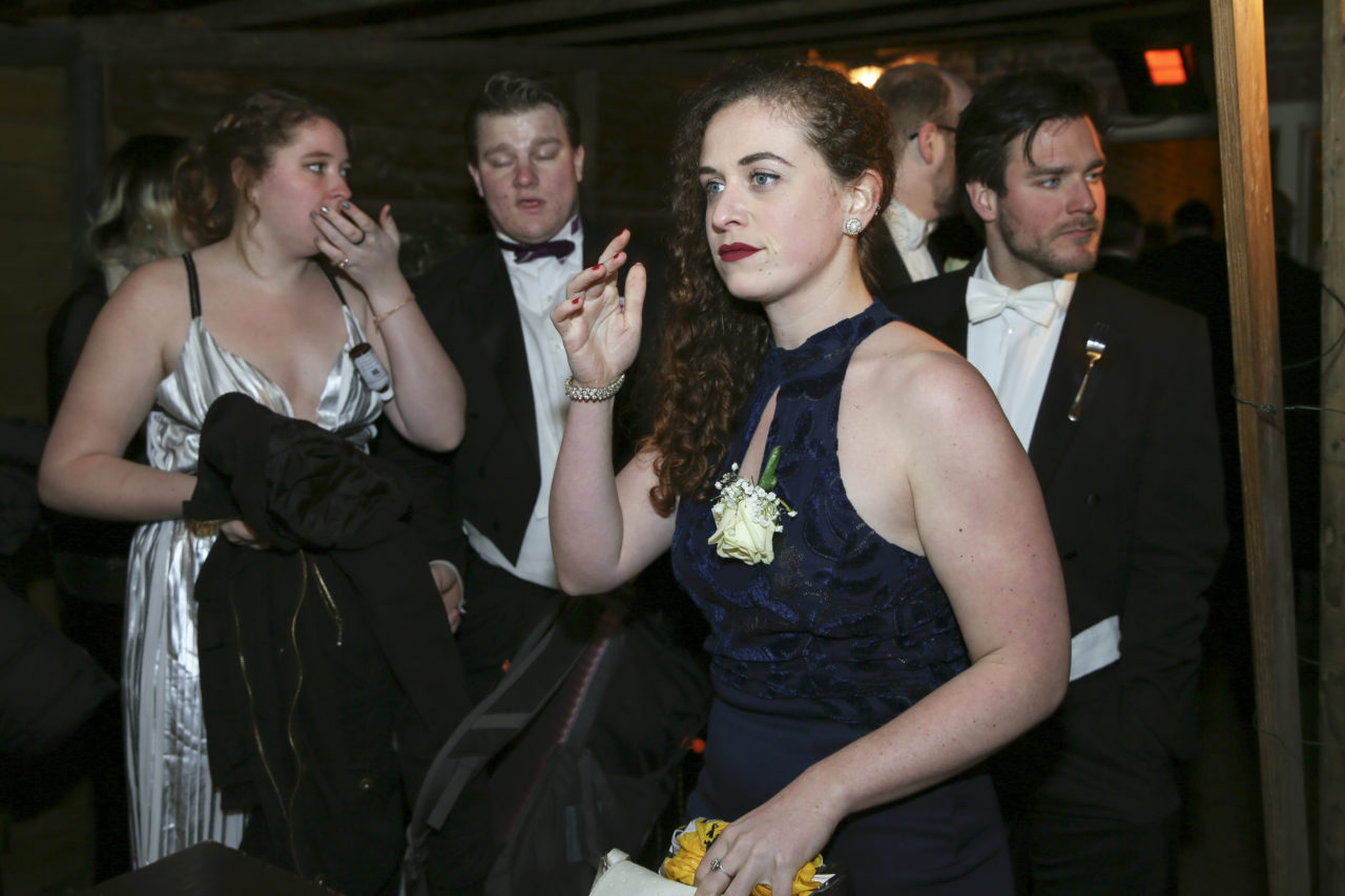 “Everyone’s probably somewhat quieter than they are at a normal party at the association,” Sander, who also stands in line, explains. “It’s the most important party of the year, so you don’t want to be dead drunk at the bar. And of course you also want to look presentable for the photograph.” Nora, a first-year student making her debut at the gala, is using the same tactic. “This year, I’m just observing. Having a pleasant evening is the main thing.” And are you having a pleasant evening? “Very much so. Everyone is beautiful and the atmosphere’s great.”