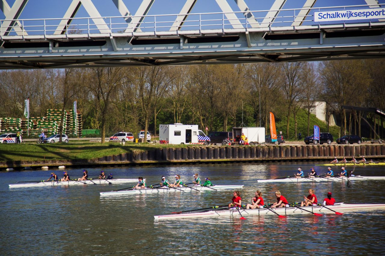 It is 3pm and the banks of the Amsterdam-Rhine Canal near Houten are filling up. An estimated four thousand fans have taken up their positions on the waterside, singing. Although they have had quite a few beers, the Skadi fans are not overly optimistic. They think fourth or fifth place for the Men’s Four is probably as good as it is going to get. “But the Ladies’ Four might just win, you know!” the die-hard fans yell.