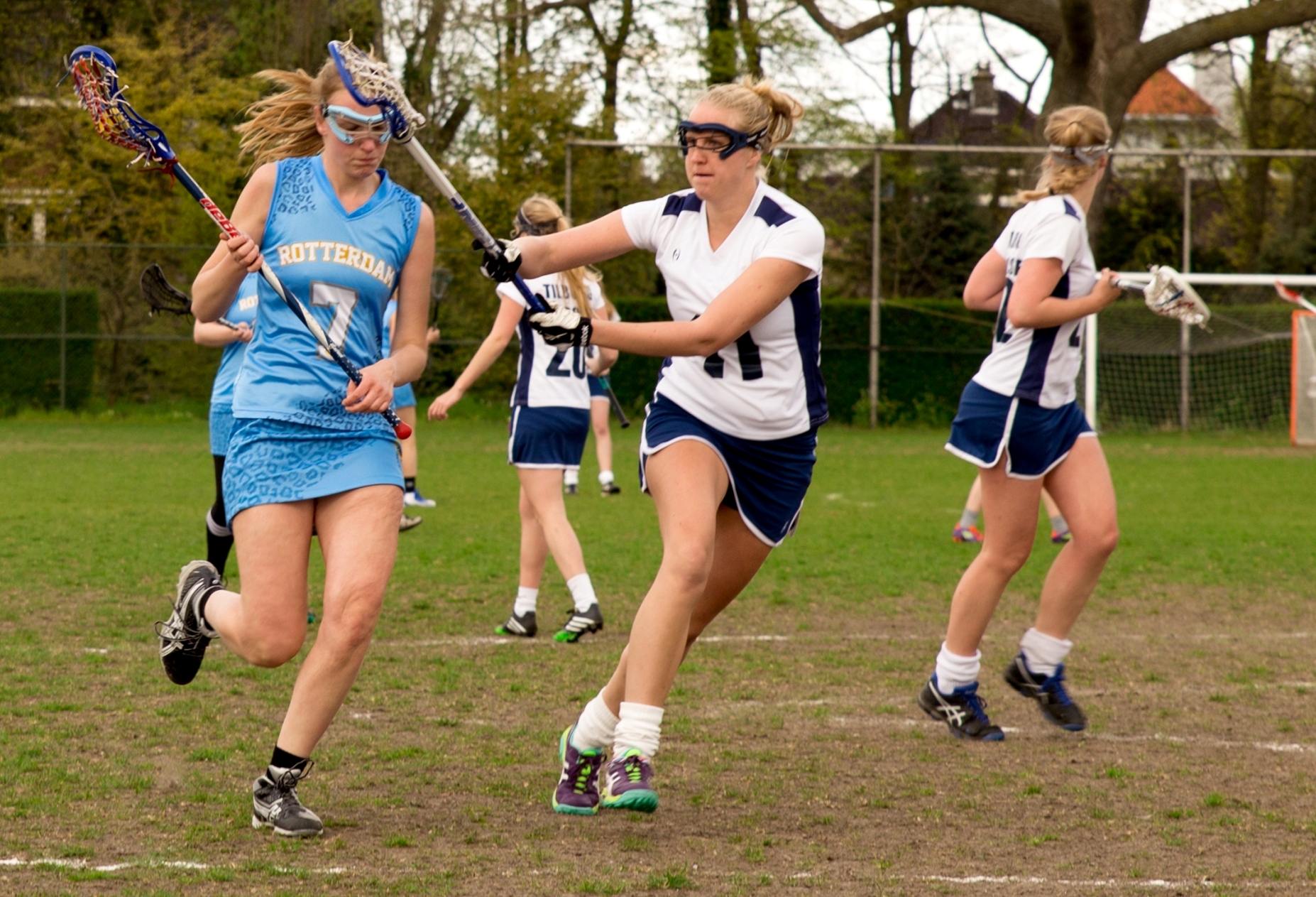Field lines drawn with flour and lightning fast runs behind the goal – this is lacrosse at its best. The Rotterdam Jaguars ladies’ team showed off just these skills last Sunday, beating league No. 3 Tilburg Lacrosse with 16-7 at the Woudestein Sports Complex.