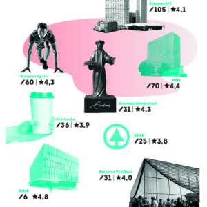 In the sports building (4.3 stars), the low prices (in both the restaurant and the gym) receive a special mention. “When I went for the 1st x, I went like Huh? Those prices aren’t right…everything was so cheap :-)” says Yelp. “Rather an old building, but otherwise very cheap and friendly,” says ‘Kareyu’ on Google Maps. And yes, you can even rate the faculties. Take Rotterdam School of Management, renowned for its modest students. “The best school in the Netherlands”, according to N. Kumar, while Mateusz Bochenczak enthuses “Amazing school, amazing people”.