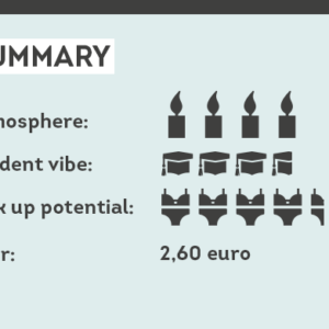 For ten euros admission, you’ll get the whole package. What you get is a big round bar, surrounded by a dance floor. Here and there, you’ll find a platform. These are the places where you leave that randy friend of yours from the group. Like leaving your child in the kids play corner at Ikea.