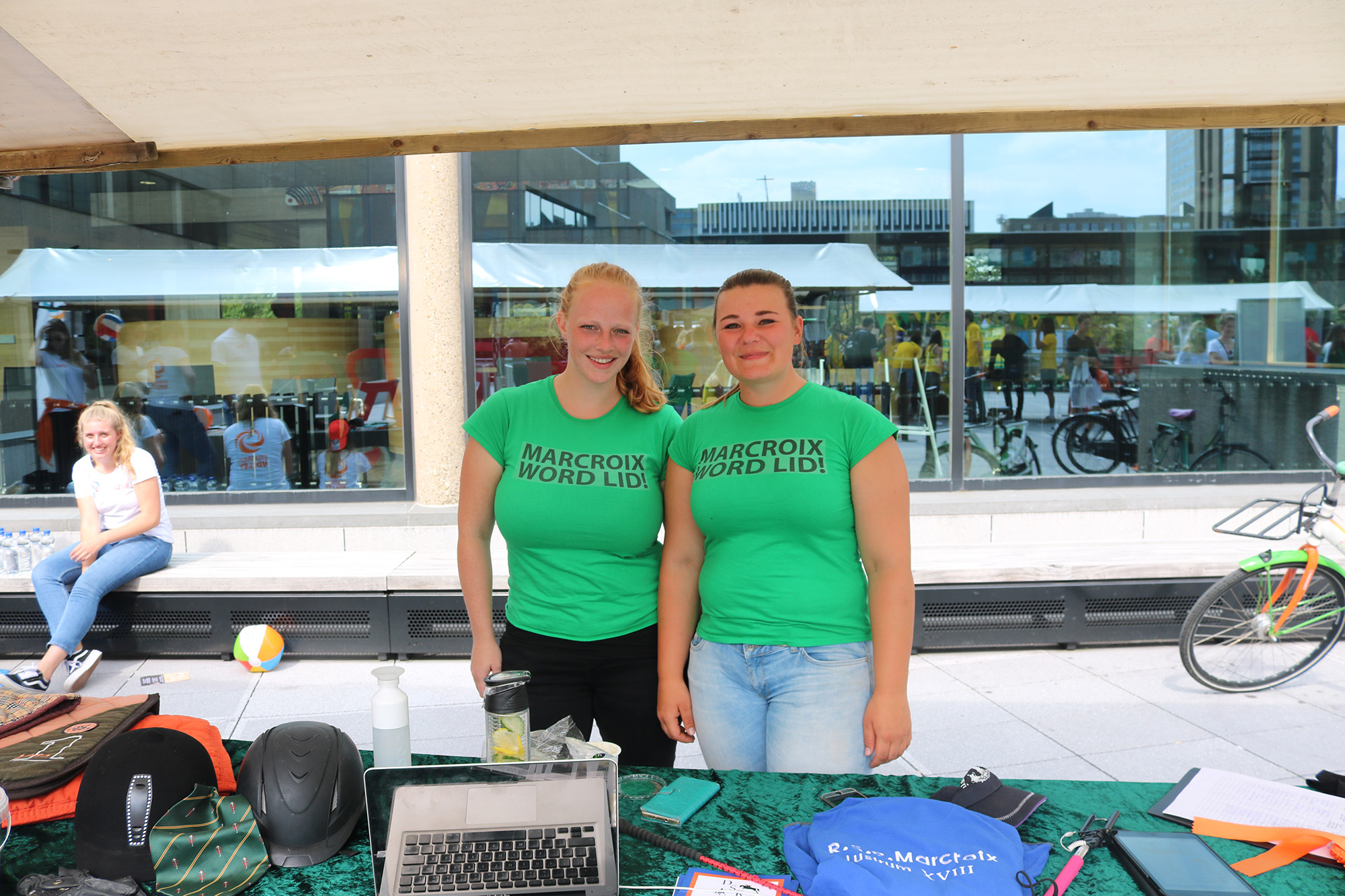 Tucked away in a far corner of the square near C hall are the equestrian girls from Marcroix. It seems rather quiet in this corner, but Bente Bakker and Liselotte Klerk are not letting it get them down. “People who want to do horse riding already know about it, they don’t need this market.” Bakker: “It was very quiet all morning, you could have heard a pin drop.” Klerk: “The big student associations tend to monopolise people.” And they’re rather difficult to find. “Two girls from the club wanted to come along and they couldn’t even find us,” sighs Klerk. But all their efforts have not been in vain: the girls have managed to enrol fifteen people.