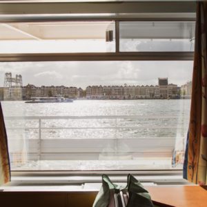Until then, the students will have to make do with the river cruise boat on Boompjeskade. If not for the dozens of (Swap) bikes parked out in front, you’d think the vessel was waiting to load up a group of old-age pensioners for the next boat tour along the river Rhine. The dining room, the upper deck, the carpet – it’s all very fuddy-duddy. But the students enjoy it for its camp value. “And since the cabins are so small, you can’t really hole up in there,” Daphne says with a smile. “Which makes it easy to make contact with other students, which is very nice.”