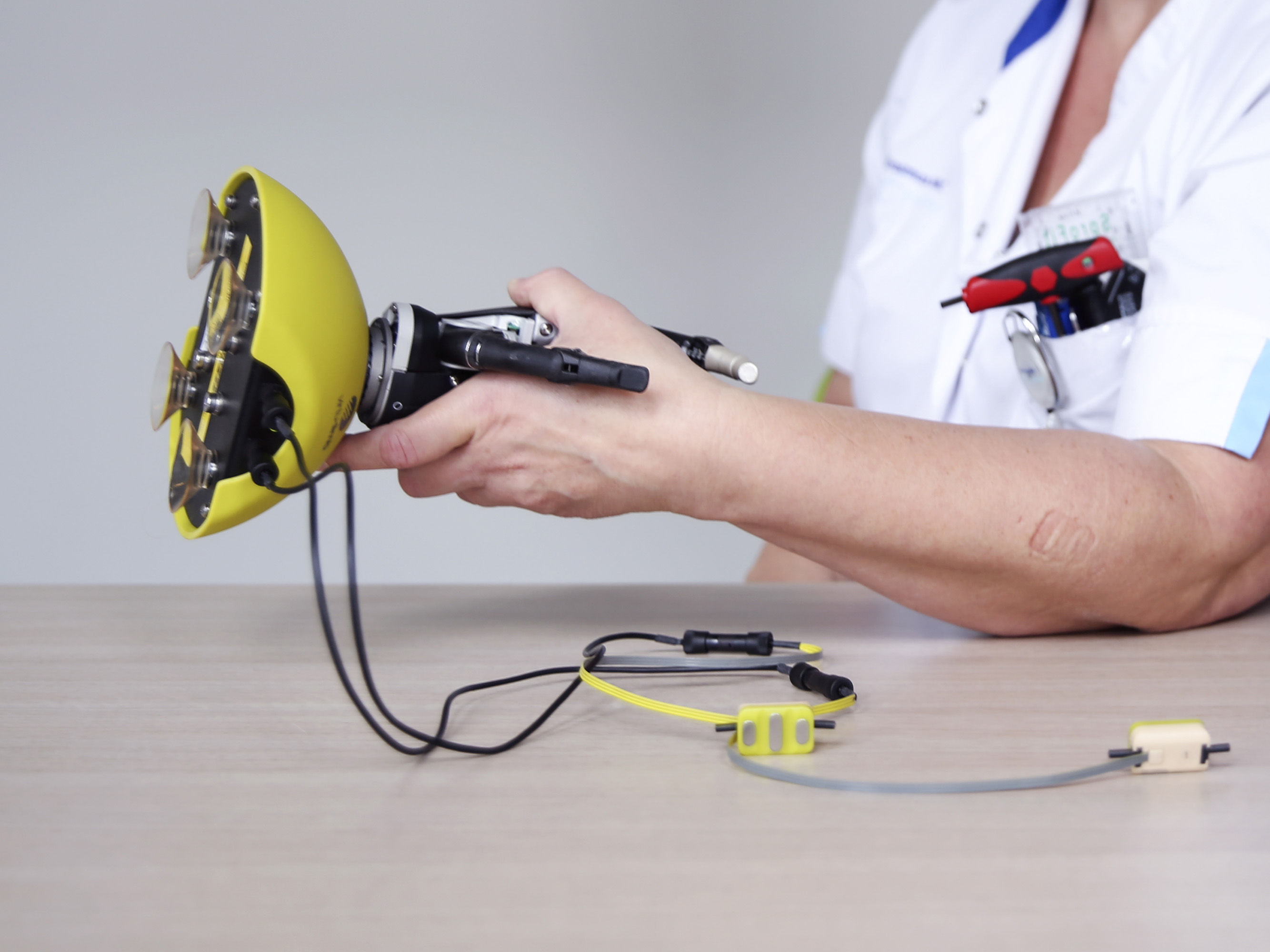 Then there are myoelectric prostheses, such as the bionic arm. But there are also more conventional myoelectric prostheses, which can be charged by putting a plug into an electric wall socket. Van Heijningen explains how these work: “Electrodes placed on the muscles of your arm or a different body part will transmit signals that will set the [bionic] arm in motion.”
