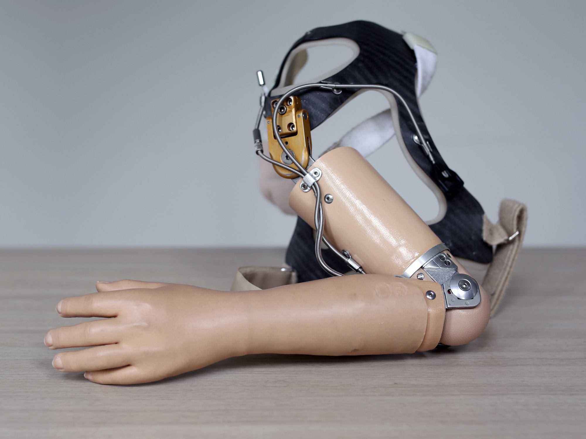 Body-powered prostheses can be moved, using the power of your own muscles. As Van Heijningen explains, “Such prostheses are firmly attached to the body, generally by means of a corset of sorts, thus allowing you to get them to move by using the power of your muscles in your good arm, or in another body part on the other side of your body.”