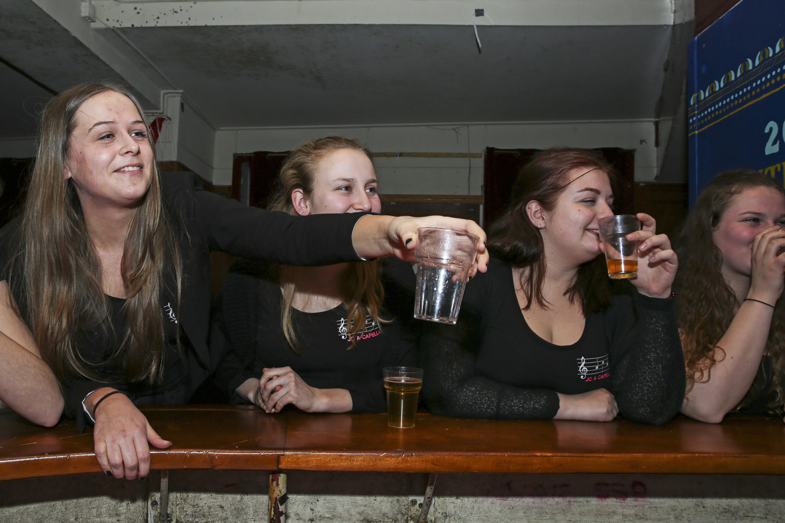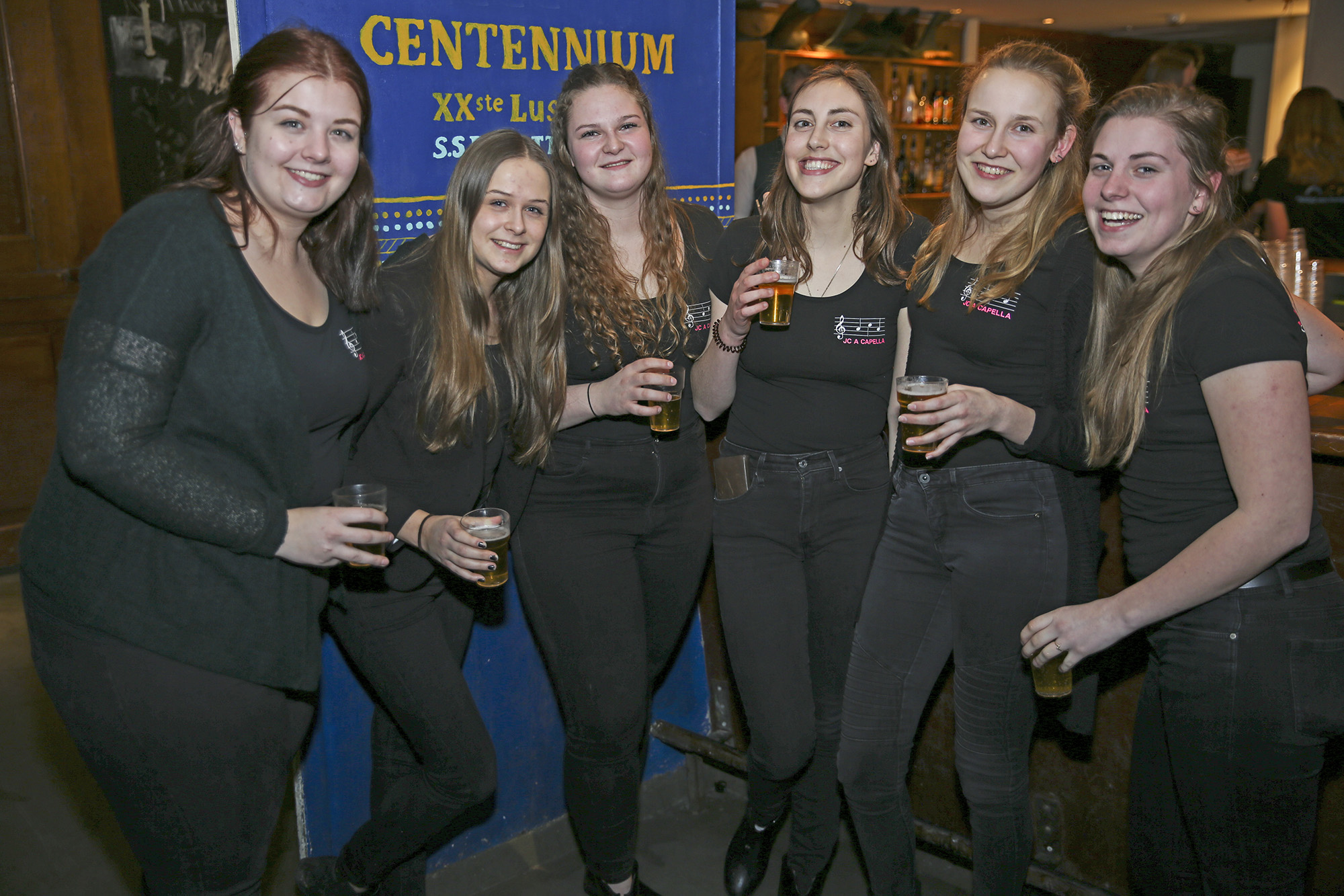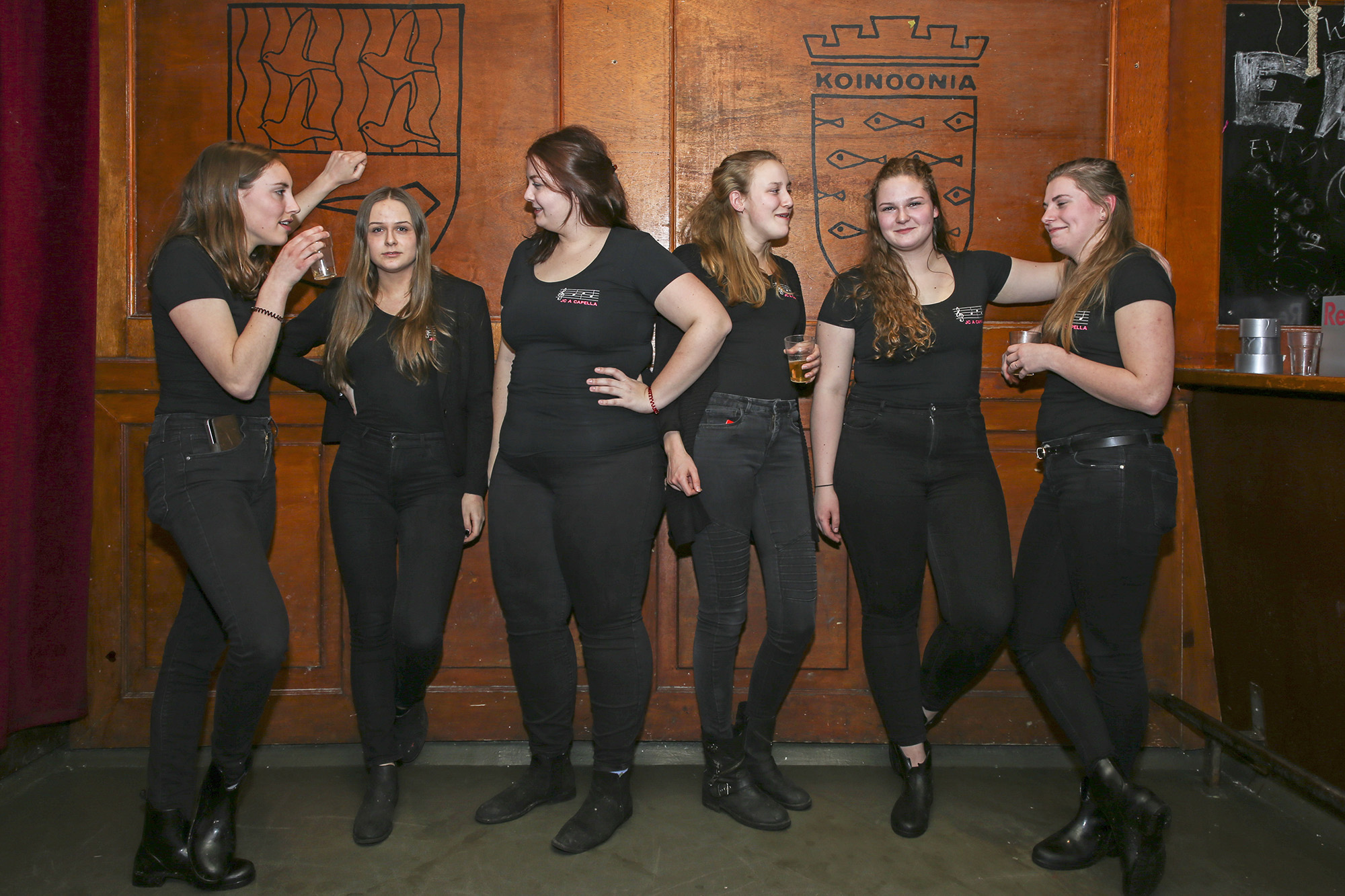 Everyone turns around to watch when Elvi, Lisanne, Sara, Maxime, Sophie and Rianne (the club’s three other members – Britt, Zoë and Elina – aren’t in attendance tonight) sing their club song, which is set to the tune of ‘Greased Lightning’. “We also have a longer version, but we generally don’t want to inflict that on people,” says club president Elvi, taking a large gulp of her beer.