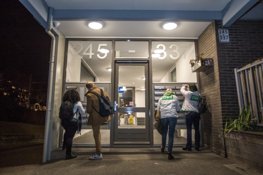 “Would you like to discuss some politics?” Elene asks cheerfully through the intercom. She has just rung a bell at a student house near Eendrachtsplein. The connection is broken, and the door remains shut. It’s not the first time this has happened during this evening’s canvassing session, but Elene will not let it deter her. Letterboxes with stickers on them that state the residents welcome DM receive election flyers, while the odd person who does open the door is treated to a conversation. You see, the 25-year-old aspiring municipal councillor wants to talk to students about their Rotterdam.