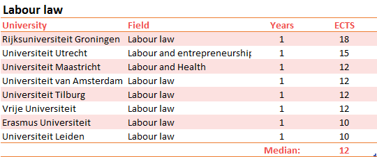 In some disciplines, brief theses are completely normal. Take legal studies, for instance. Take the master programme in labour law, actually. According to labour law departments in Rotterdam and Leiden, ten ECTS credits suffice for the writing of a thesis. Students taking the same degree in Groningen are given nearly twice as much time to complete their theses, which are worth 18 ECTS credits.