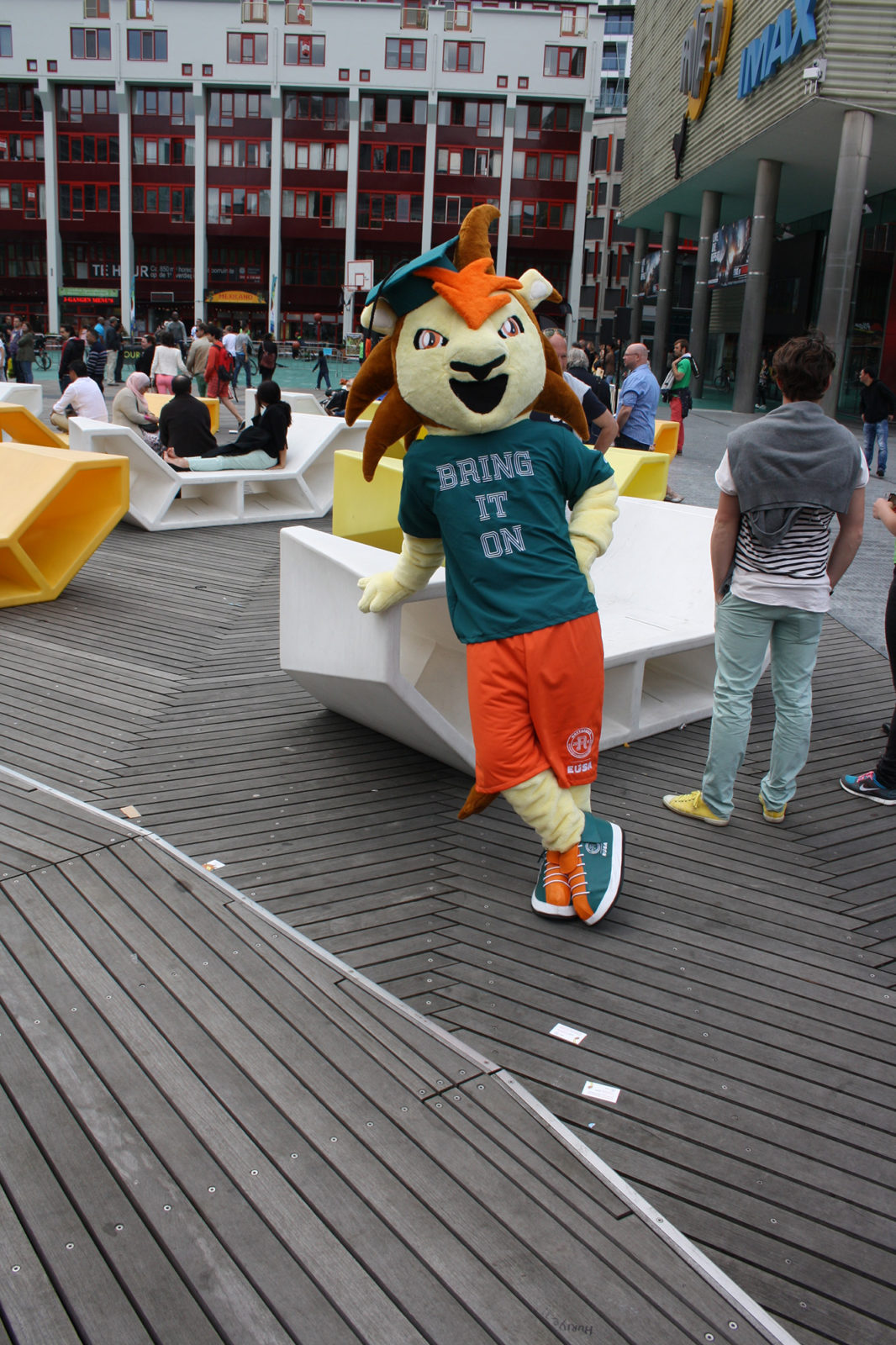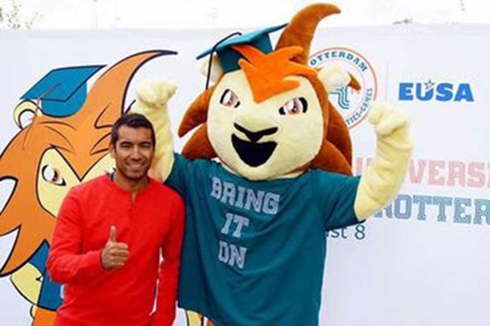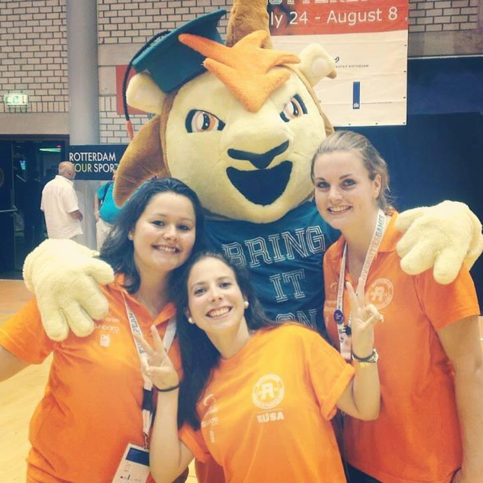 Erasmus Sport’s Gaby Dijkstra had the mascot designed for the 2014 European Universities Games, held in Rotterdam. “Roffa is a studenty, tough-looking lion, which is why he symbolises Rotterdam student sports. Back in 2014 he joined in all the activities. He posed with all the big shots and was the official face of the EU Games.”