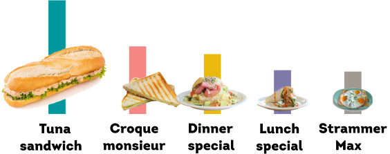 After the tuna pistolet, the toasted sandwich is the next best seller, followed by the daily dish of the day and the lunch tip. The ‘uitsmijter’ (three eggs on three slices of white bread for those with a real appetite) comes in fifth place.