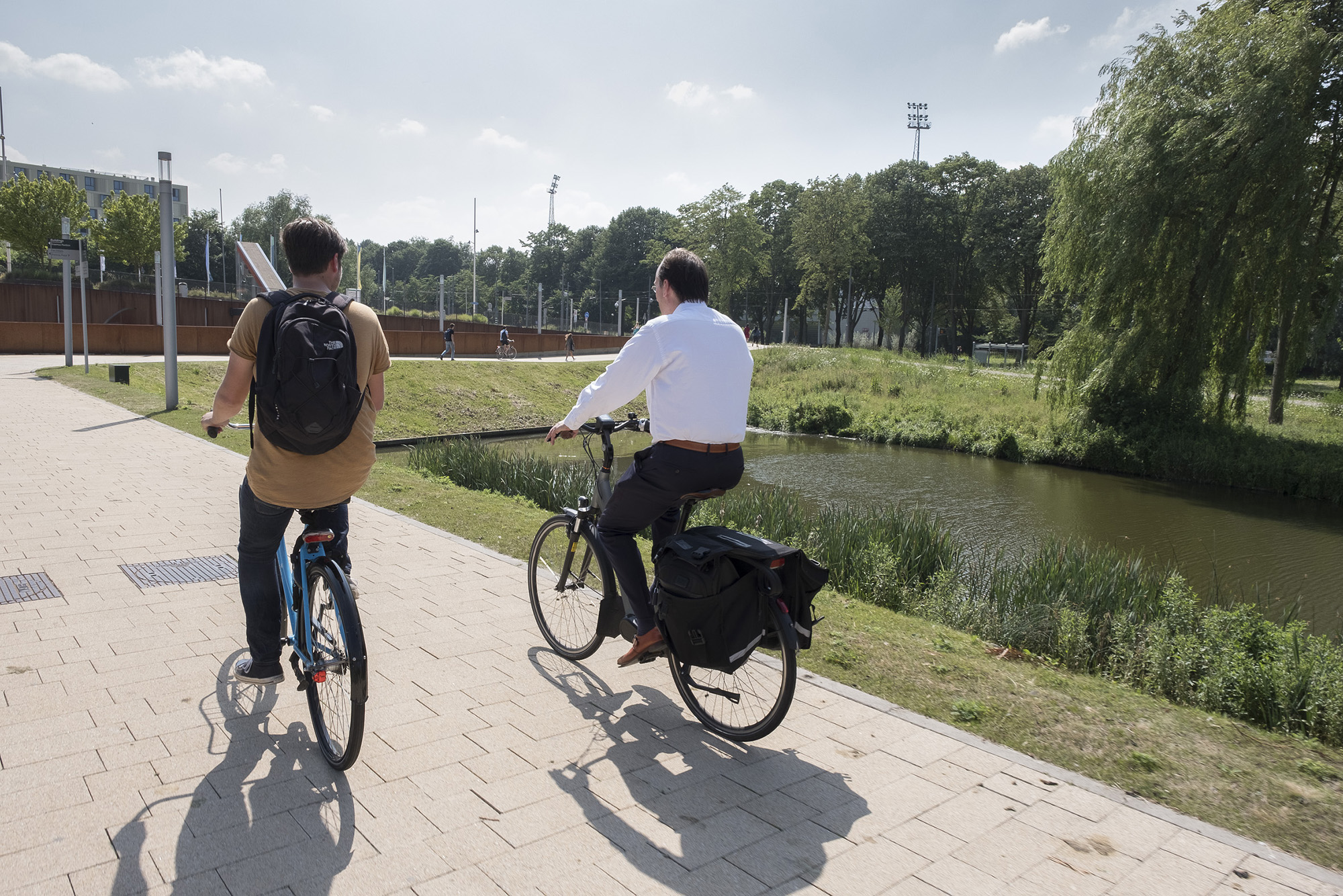 Once we hit the road – the rector on an e-bike, me on a swapfiets and the photographer in tow on a racing bicycle – Pols tells me he was seriously ill in the autumn of 2016. “I was in a bad state at that point.” He had unexpectedly contracted sepsis – meningococcus – which had caused meningitis. “I saw Erasmus MC’s Intensive Care ward from the inside. Of course, I had already visited this unit, but in an entirely different context,” he says with a smile. Is this the sobriety of a trained physician? “Or a sobriety instilled by fear.”