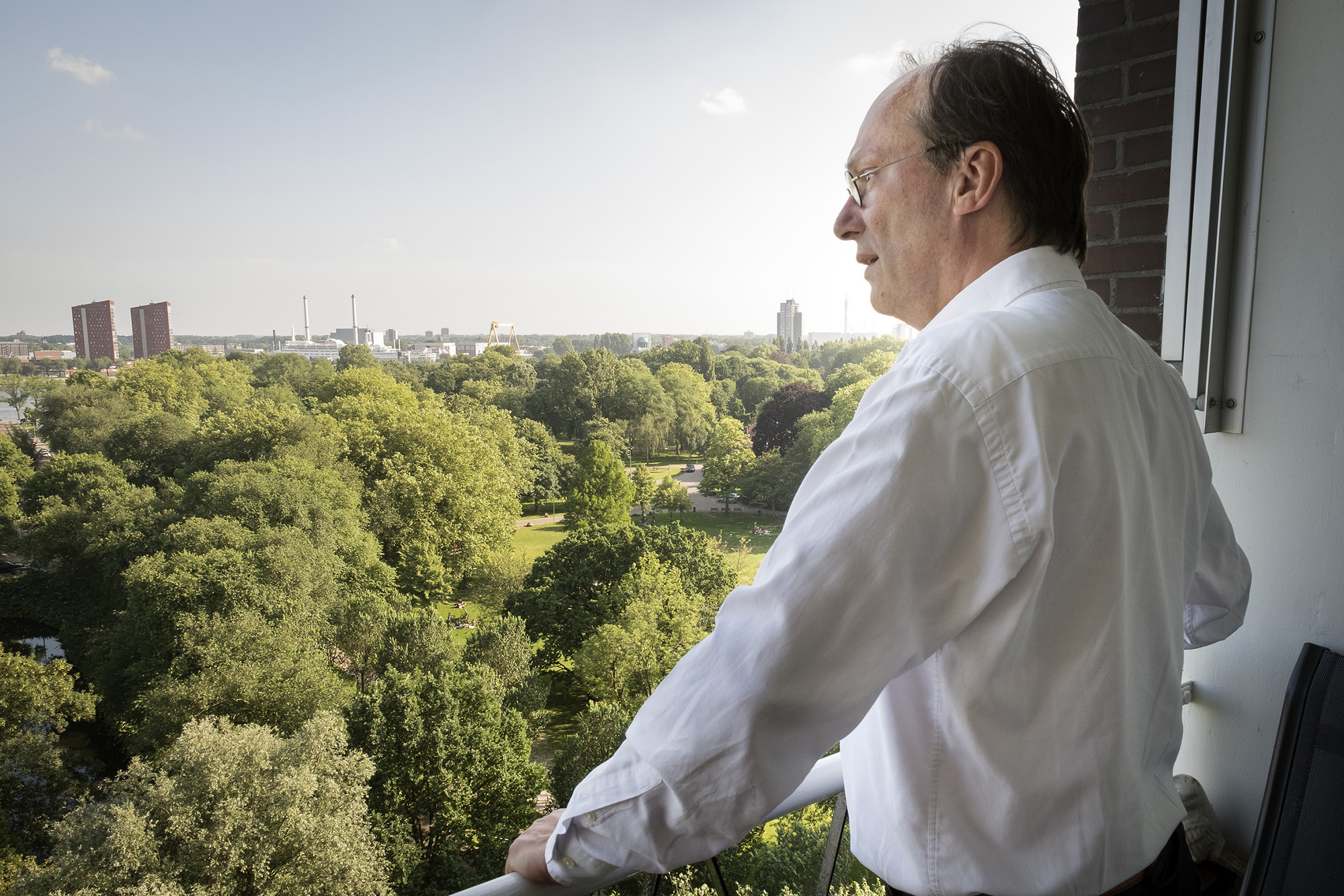 We take the lift to the eleventh floor, where Pols’s wife Lientje is already cooking dinner: a macaroni casserole with ham and cheese. Out on the balcony – beer in hand, with a fine view of the Euromast, Nieuwe Maas and from the kitchen even Campus Woudestein – Pols explains that one thing that proved very helpful was the ‘Rectoren College’, the informal consultation platform for the rectores magnifici of each of the Dutch universities. “I have always found it very pleasant to speak freely about what was going on within the university in that setting.”