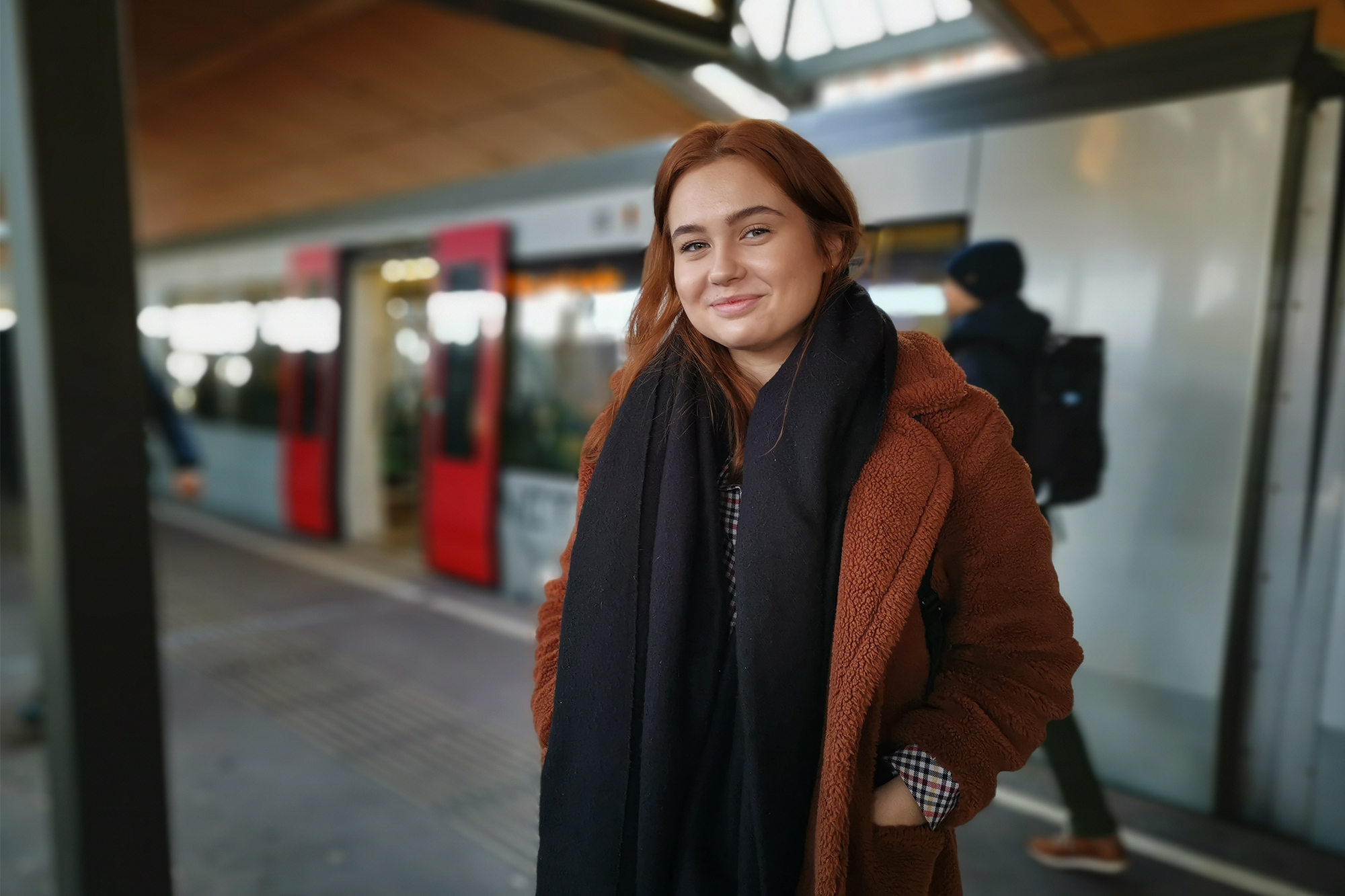 As we walk to the bus, Julia adjusts her backpack, tightening the straps. “At the start of the academic year I always carried a nice handbag and an extra fabric bag for all the heavy textbooks and law volumes. That wasn’t very practical, so I asked for a sturdy, handy backpack for Christmas.” After a short bus trip we transfer to the underground in Schiedam heading towards Kralingse Zoom. Julia eagerly anticipates the new metro line that will connect Rotterdam with Hoek van Holland, but the Hoekse Lijn route is facing mounting delays. “Then I would be able to board here and get off just around the corner from the campus. Do some reading and eat breakfast without having to rush or transfer to another line. Perfect.”