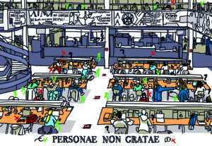 The collective ikRotterdam consists of the artists Evalien Lang, Ferry van Steijn and Mark Kolle. Every month, they comment on something remarkable on campus in a cartoon.