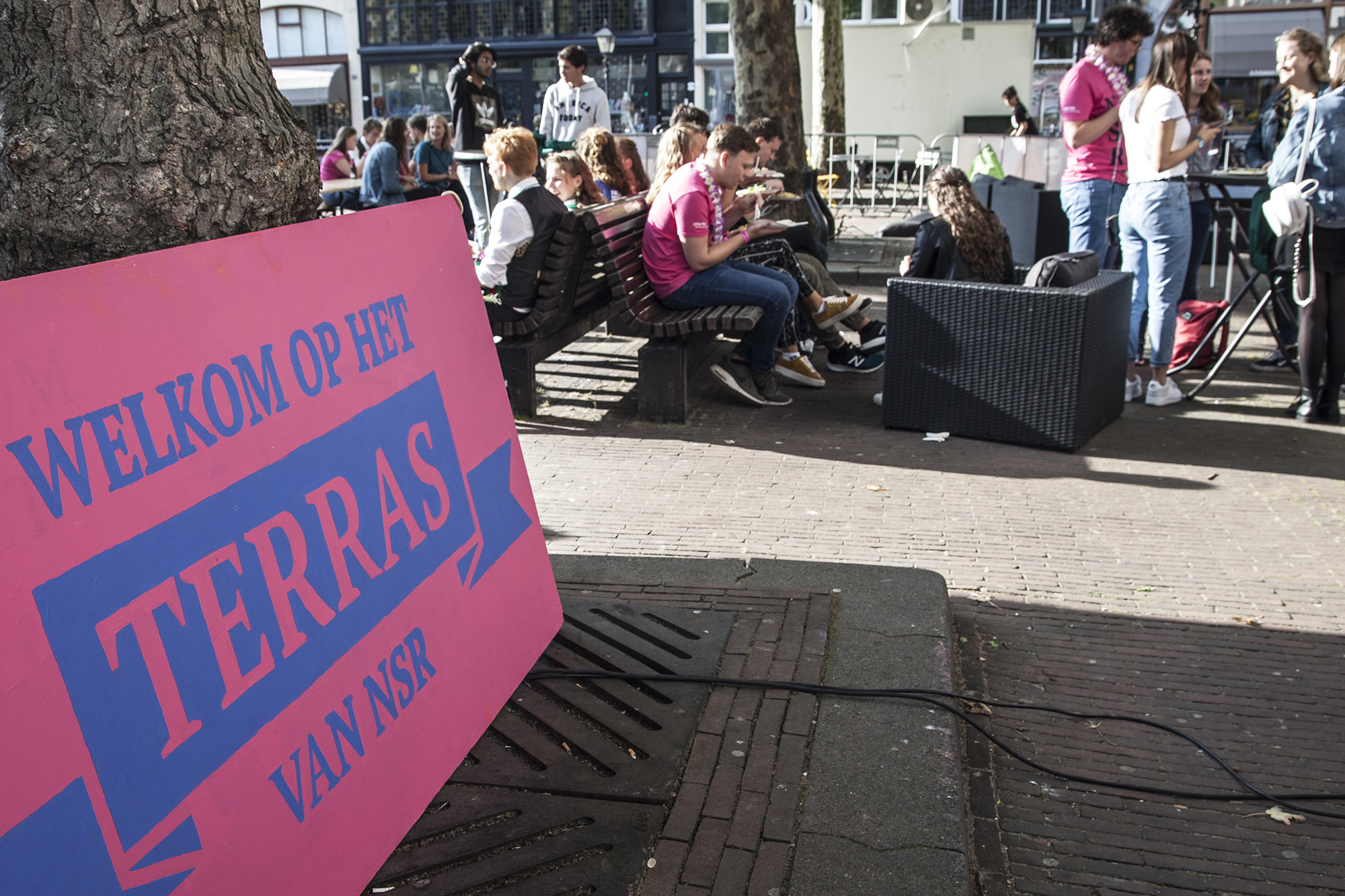 Here on the terrace, Eureka week is enjoying a quiet start. Now and then a beer is served, but there aren’t many people at the bar. “You can see that everyone is beginning the week calmly, because they’ve still got the rest of the week to go,” says Noordhuis. As the first group of diners arrives at NSR and the building starts to fill up, he walks past the kitchen. There’s a vegetarian pasta on the menu. ‘’Meatless Monday, I think all the associations do that.”