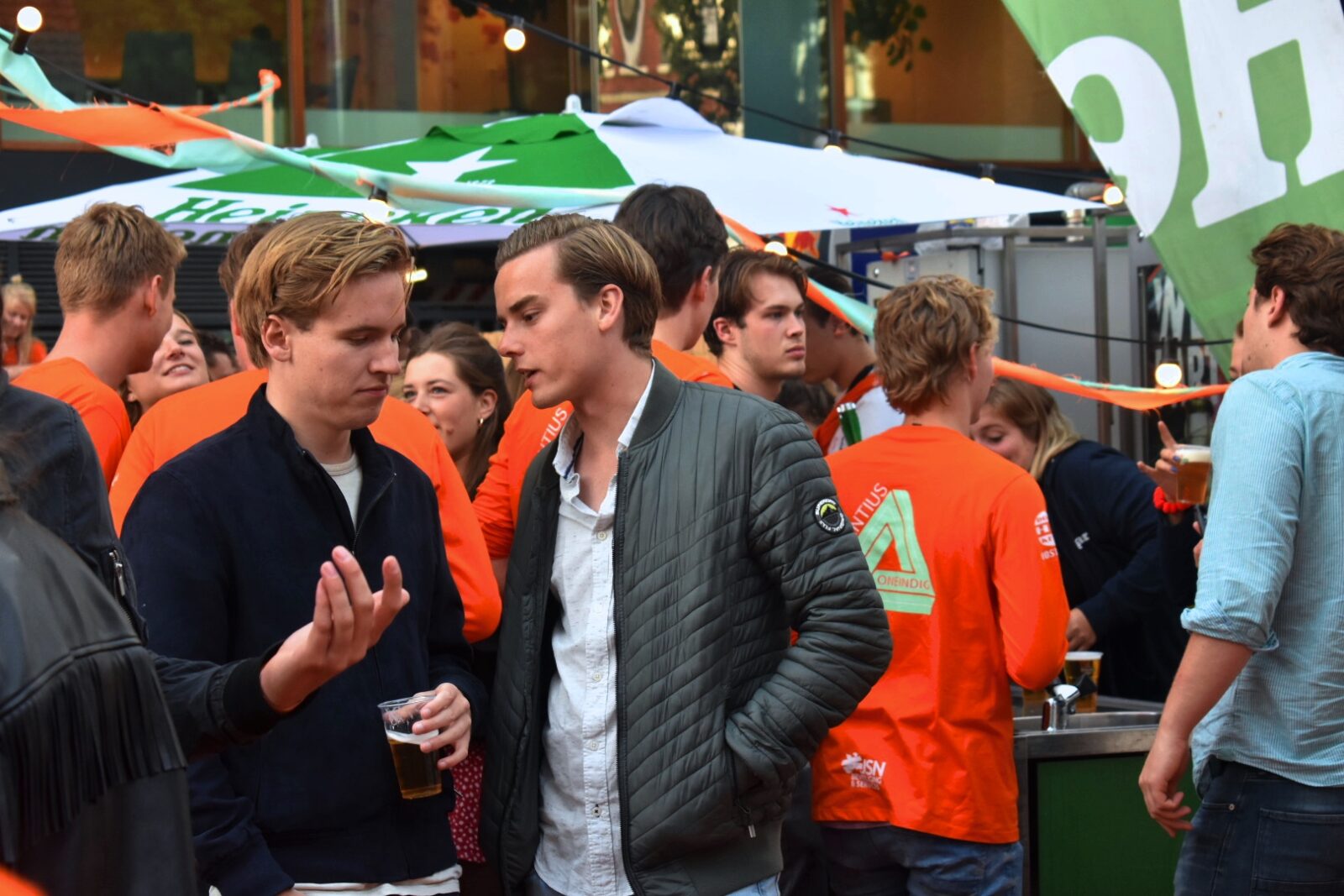 At the entrance to the terrace, we receive a warm welcome. “Can I see your IDs please,” asks a jolly young man in a suit. He immediately puts on his sunglasses: “I don’t mean to be rude, but I only had three hours’ sleep last night.” Wearing an 18+ wristband, we’re allowed into the Laurentius terrace on Infirmeriestraat. It’s busy, and the music is loud: here the new academic year is being celebrated in style.