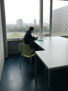 Second-year International Bachelor of Economics & Business student Christoph heard about the new areas from a friend. We find him in one of the rooms on the sixth floor, where redecorating hasn’t been rounded off yet. “It’s true, this room could be a bit homier; it’s still somewhat uninviting. But it’s quieter than Polak and more peaceful than the library, so it’s the best place to study for the time being.”