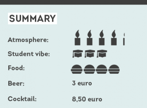 Ayla is definitely not a studenty kind of place, but it has a wonderful vibe and is incredibly hip. The interior is very colourful and the toilets are gender-neutral. There is a lot of laughter or animated chatting at every table, the lights have been dimmed and the music has exactly the right volume. We think the average age of the diners is between 25 and 35. But hey, if you’re after a decadent kind of night, this is a great place. And it’s on your way to the city centre, too, so if you feel like making a serious night of it, you can always find yourself a sweaty club afterwards and join your fellow students on the dance floor.