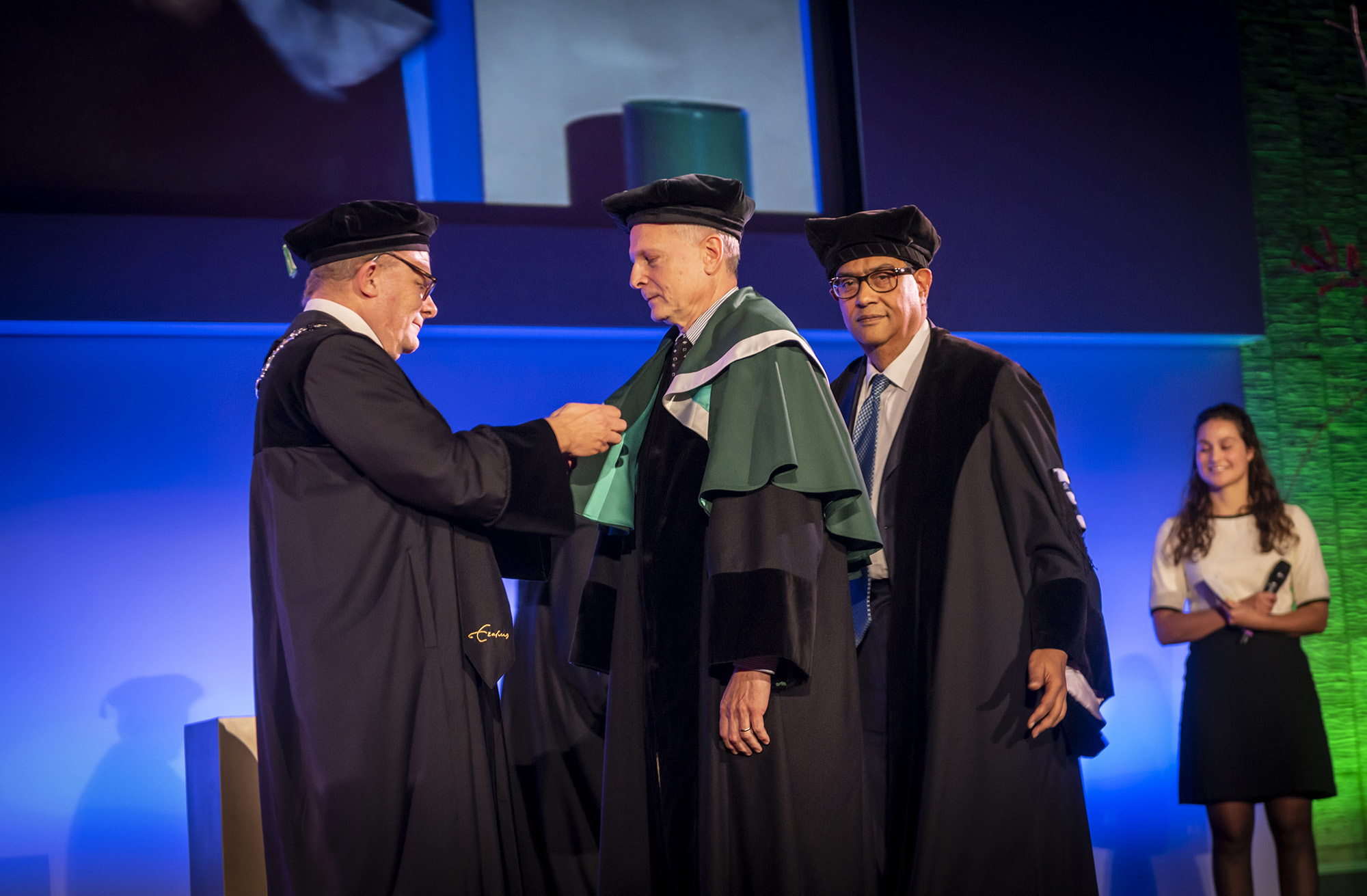 Esther Duflo was not the only person to be awarded an honorary doctorate at the Dies Natalis ceremony. Dani Rodrik, a professor of International Political Economy at Harvard, was also presented with one, on the recommendation of Prof. Mansoob Murshed of the International Institute of Social Studies. Prof. Rodrik’s research currently focuses on jobs and economic growth in both developing countries and countries with highly developed economies.