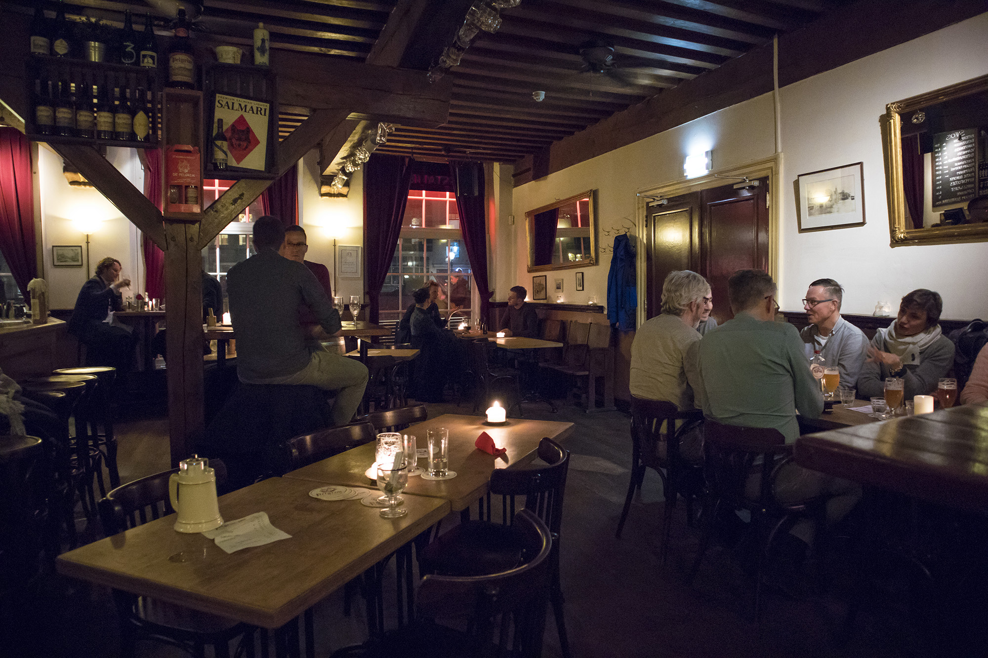 Both the bar-brewery itself and the surrounding area feel like one big museum. The collection of old beer mugs hanging over the bar and Pelgrim’s array of different beer glasses take you back to the olden days. If the weather’s right, you can sit along the canal or in the establishment’s courtyard. But today, we’re staying inside where it’s nice and warm. It’s a great place to have a drink or grab something to eat with your date, but it’s equally suited for playing a board game with friends on a chilly afternoon. And if you prefer, it’s also a great spot to while away a few hours on your own, enjoying the view and musing about bygone times.