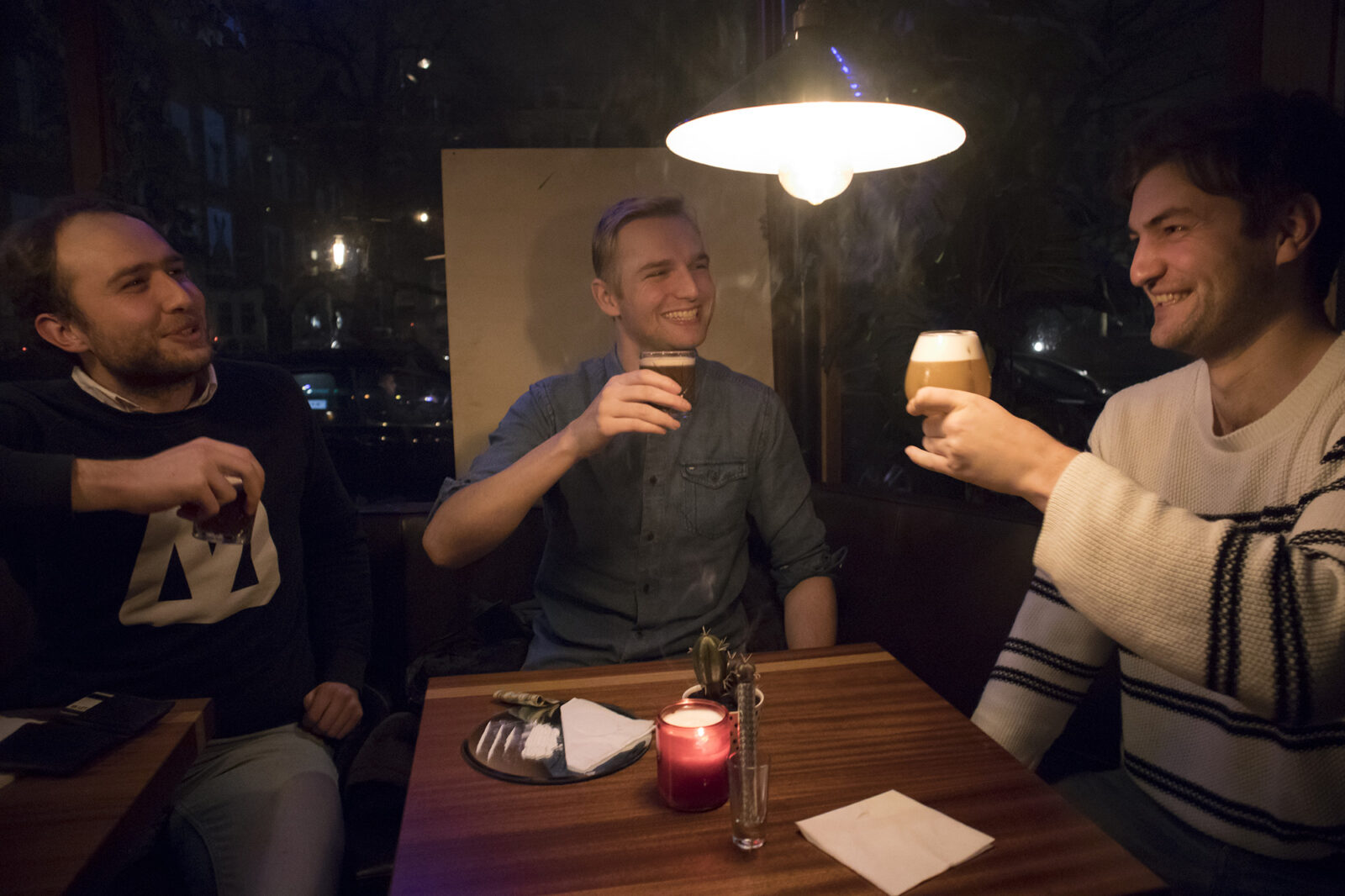 Why even go to the trouble of putting up art if you can use a projector? The entire wall is full from one end to the other with framed pictures of animal heads on human torsos. It’s too late for a bite to eat, by the way: the kitchen is closed. But from 5 p.m. you can order Mexican dishes and snacks, in keeping with the Latin American background music. The bar’s name seems less appropriate, though. As far as we know, Amehoela means ‘get lost!’ – in a bad way – and we aren’t really feeling that vibe. Everyone seems to be chatting away and having a good time.
