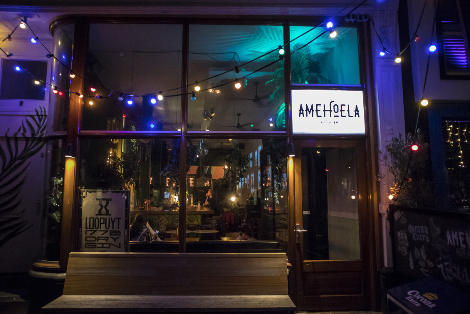 Outside it’s freezing cold, and so blustery that cyclists nearly end up in the Westersingel. Fortunately, on the very same canal you find a bar that offers a cure for the winter chill: Amehoela.