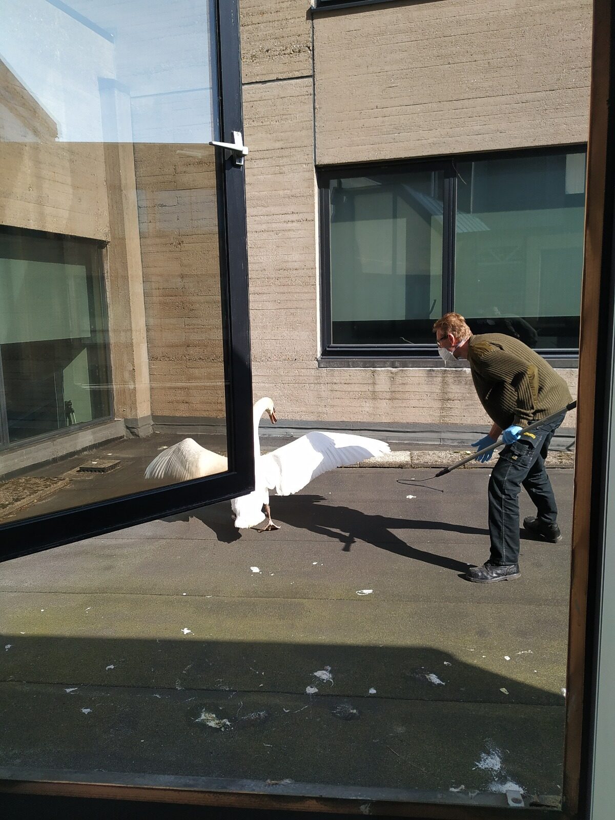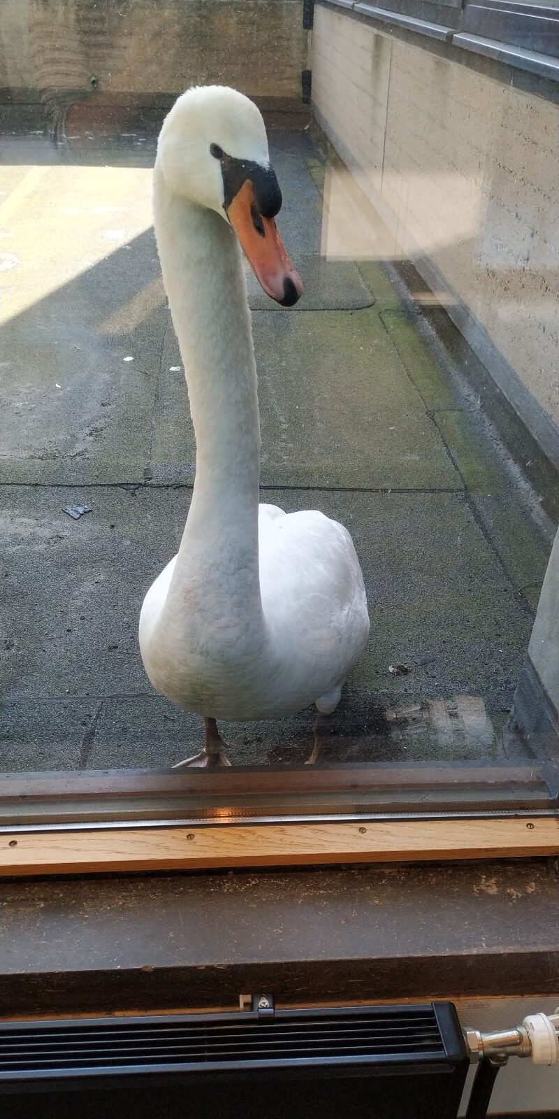 “Once I got to the office, the swan was right in front of the window. At first I thought, wow, that’s great, we’ve got ourselves a swan! But at the same time, I vaguely remembered an EM story about a swan that had got stuck in the exact same spot. I didn’t see any injuries, but I did see a shitload of swan poo. It was clear that the animal had been there for a while.”