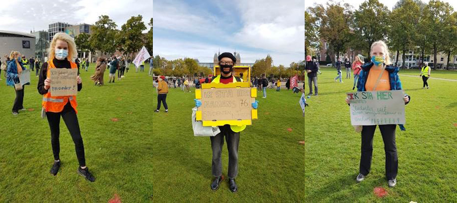 Cato van Hoegee, Secretary of the Amsterdam student union ASVA took to the stage. “There are first-year students who have no idea who they’re studying with. They only know their co-students as a black screen with a mute button. We can do better than this!” Her speech was interrupted every now and then by applause. “So, dearest government,” she concluded, “don’t let students fall by the wayside.”