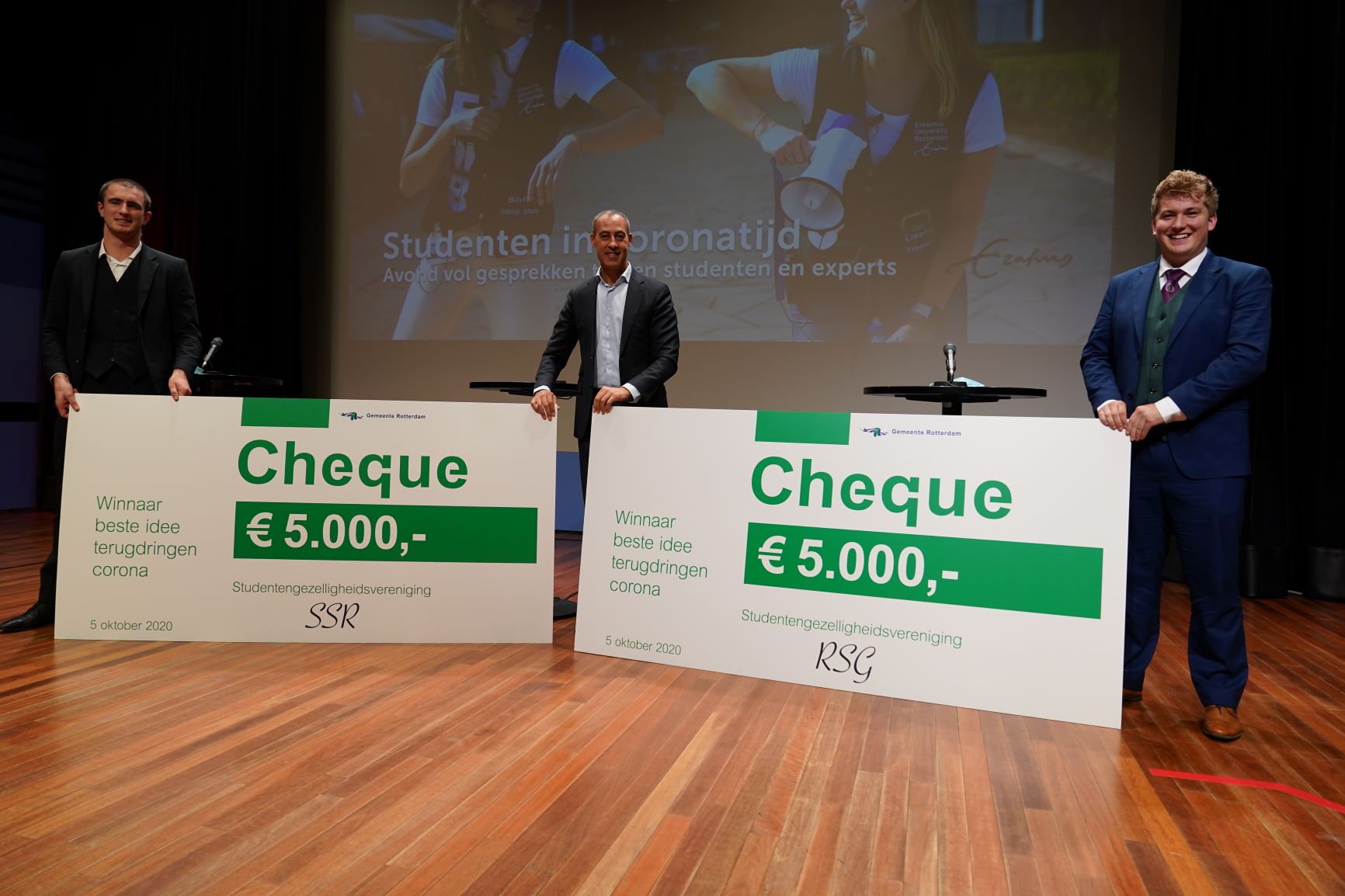 At the end of the evening, a prize was awarded to the party that has come up with the best idea to ensure that young adults comply with the restrictions. Rotterdam Councillor Said Kasmi (D66), who holds the education portfolio, awarded prizes to RSG and SSR. Both societies will receive €5,000.