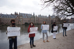 Internationally, including in this country, public protests have been organised in their support. Last Saturday, students at Rotterdam University College demonstrated at the Hofvijver in The Hague. And today the Groninger Studentenbond (GSb) organised a demonstration to show their solidarity, which drew an attendance of around thirty. They are calling on Dutch universities and the Ministry to condemn the arrests and come out in defence of academic freedom. “Up until now it has been eerily silent”, said GSb chairperson Marinus Jongman.