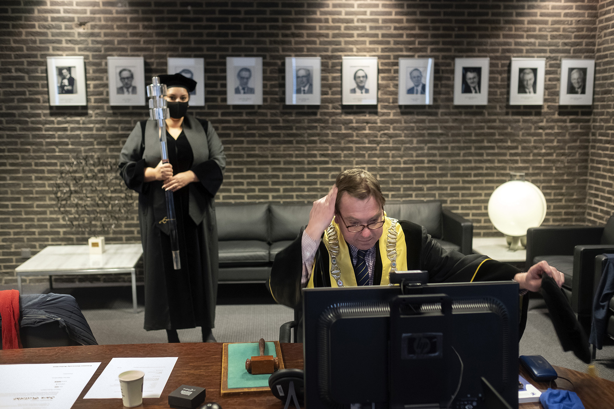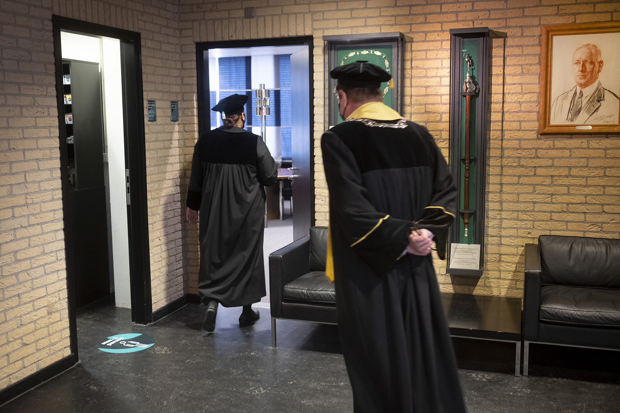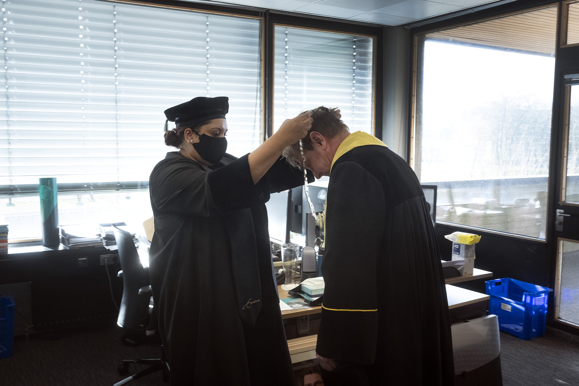 Sometimes an online ceremony actually comes in handy. Sara Rellstab, who obtained her doctorate at EUR, lives in Switzerland and was able to defend her dissertation from home.