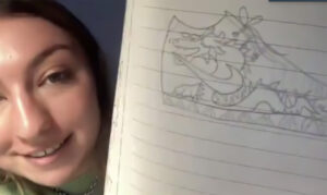 Students design their own sneakers full of fruit, hearts and dragon sketch