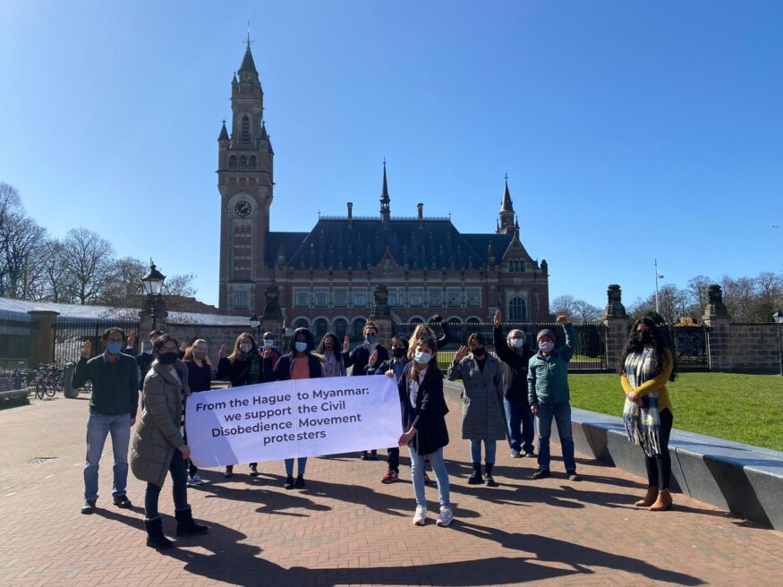 Their first solidarity actions, taken in March, were group photos taken on the threshold of the ISS building and in front of the International Court of Justice (ICJ) in The Hague. The pictures show the activists displaying three-fingered salutes, which have become symbolic of the pro-democracy movement in Myanmar. “We took the photos immediately after a violent weekend in Myanmar in which at least 39 people died. The latter photo shoot at the ICJ a symbolic one. It is currently trying a case regarding the suppression of the Rohingya (an ethnic group that was driven from Myanmar by means of abject violence – ed.).” Among other things, the trial is meant to determine whether a genocide was committed.