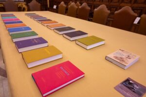 Wheeling along the entire series of 21 books in a suitcase, last week the pair set off for Vatican City. There they were welcomed in the book Valhalla by among others the cardinal responsible for the library and the Dutch ambassador for the Holy See. “It was beautiful. Everything in gold, paintings everywhere. Every wall and every ceiling has a meaning. Which makes it very special to watch a case containing our 21 books being wheeled into the library. That was also an emotional moment for Jos. That such a universal institute was interested in something that her husband started.”