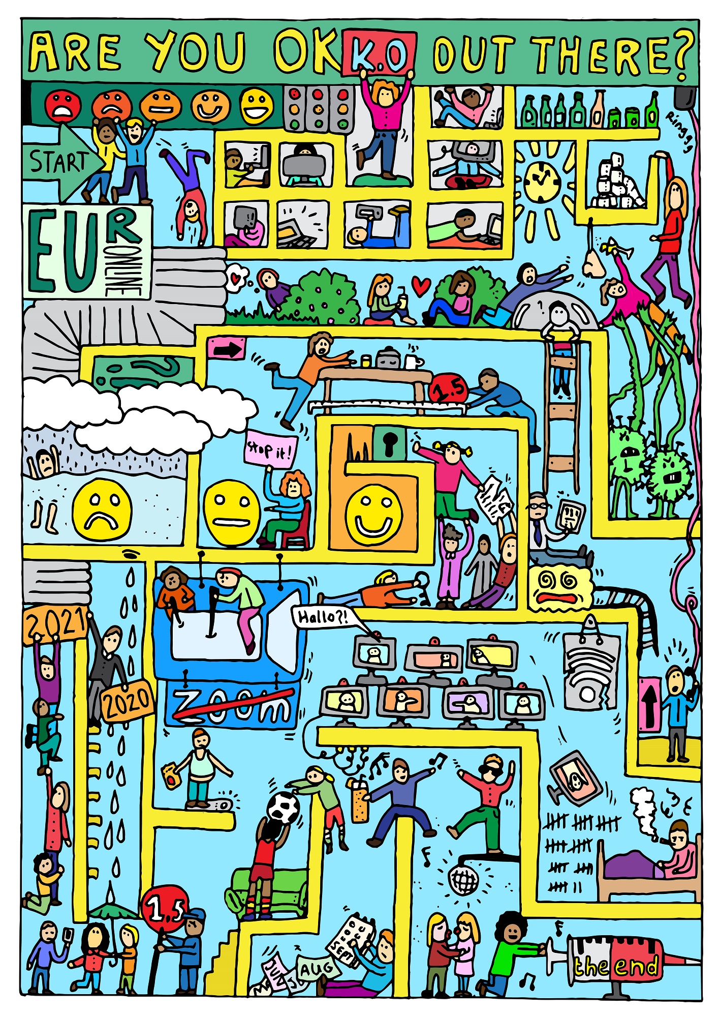 It was a hard year for many students. From stress about proctoring and glitchy Zoom connections to loneliness or spiralling drug use due to boredom. Illustrator and EUR student Pauline Wiersema depicted the maze that sometimes characterised the last academic year.