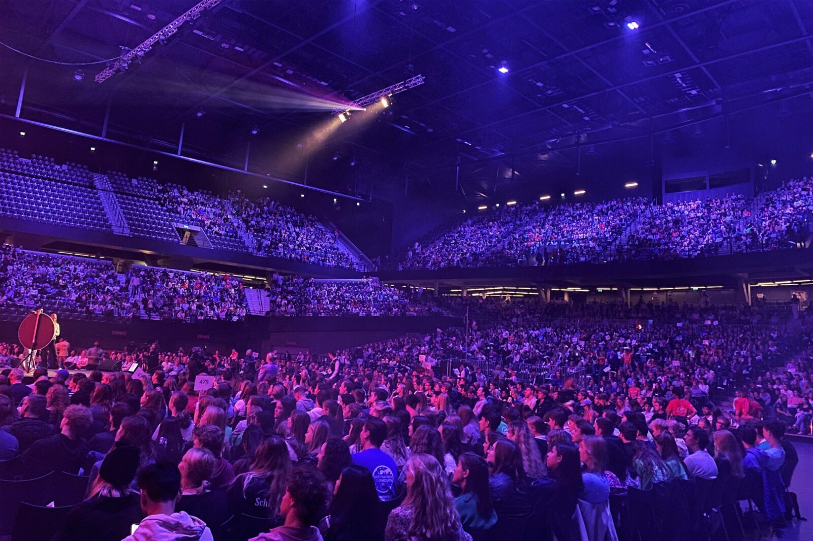 With queues of easily a few hundred metres of waiting students standing in the windy surroundings of Ahoy on Monday morning, it was a truly surrealistic post-corona image. After around an hour, when the hall was full and the karaoke pre-programme had ended, duo Wies and Bo opened Eurekaweek by announcing the first act, two dancers with LED torches who entertained the audience. You could read ‘Destination Unknown’ and ‘Eurekaweek’ in their quickly-rotating torches.